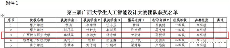 喜报|我校学子在“第三届广西大学生人工智能设计大赛”荣获一等奖