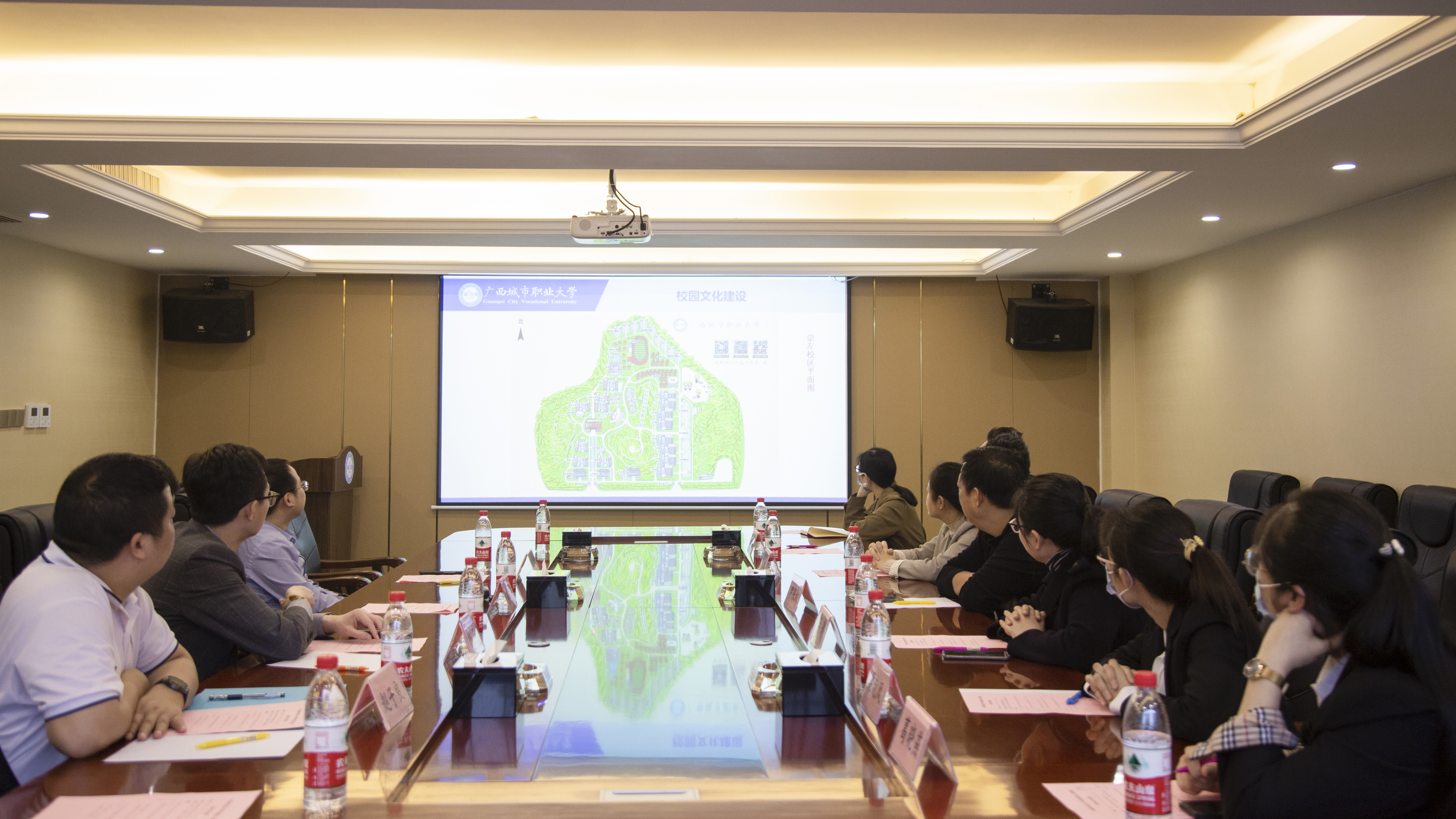 会上,我校工作人员通过播放视频的方式,让李婷副院长一行人更好地了解我校的文化校园,技能校园,创业校园,健康校园。