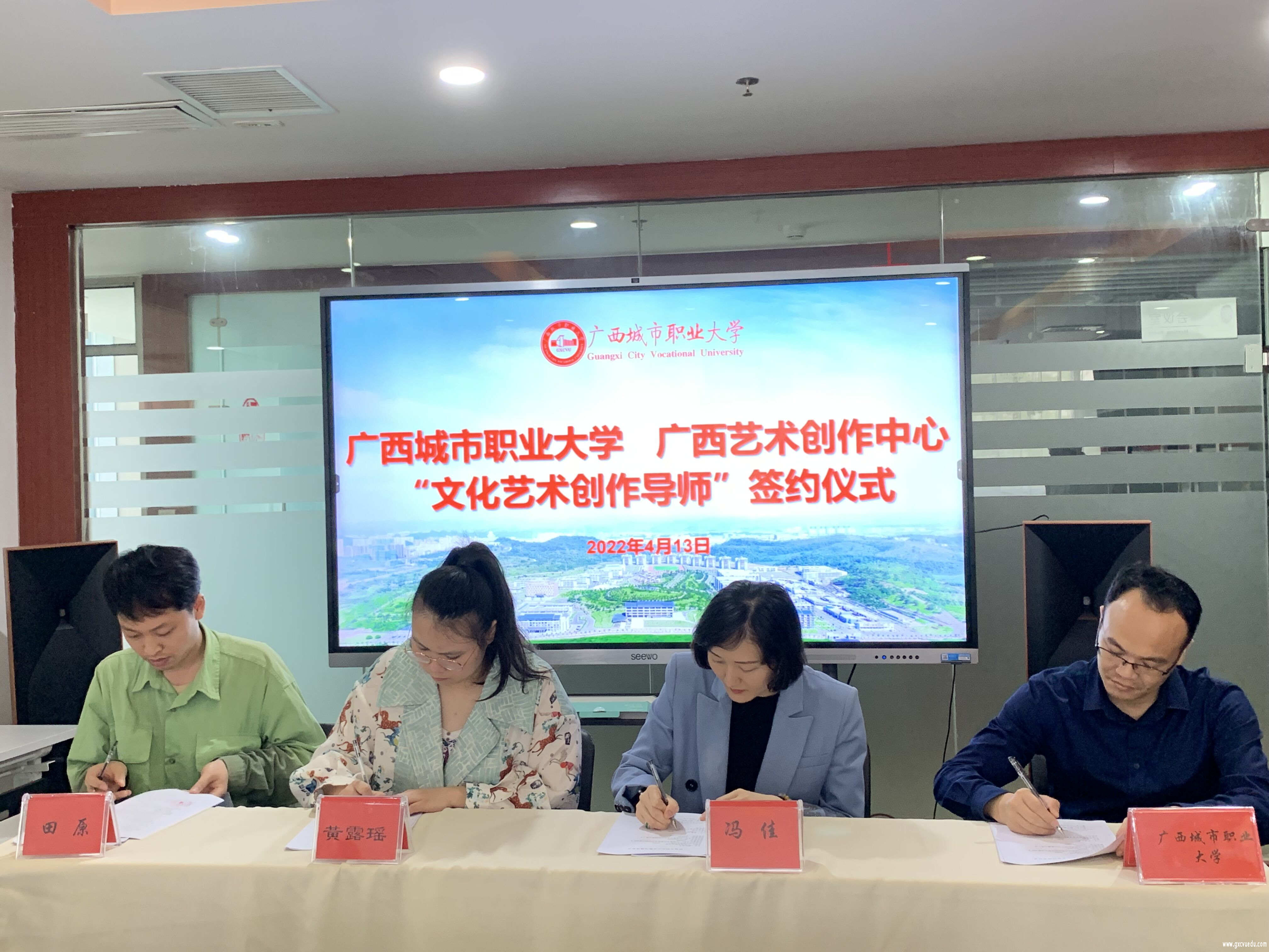 为实现教学科研资源共享,促进校际拓展,提升办学水平,提高办学质量,更好地育人育才,服务地方经济社会文化发展,4月13日上午,我校与广西艺术创作中心在广西本科职业教育研究中心举行合作交流协议签约仪式。