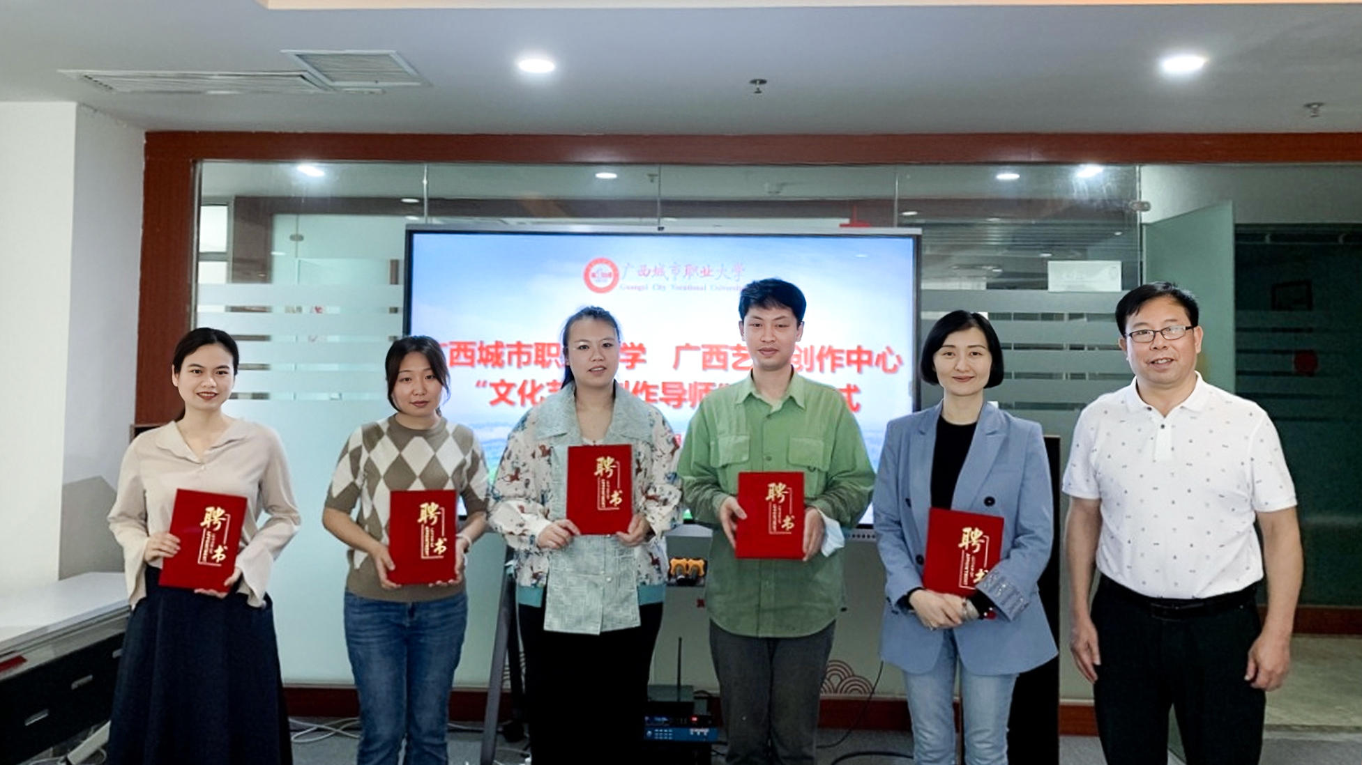 接着,在场与会领导、老师一同观看星空(中国)官方体育网站宣传视频,聘请广西艺术创作中心冯佳、黄露瑶、田原、饶秋芸、崔振蕾5位硕士为我校“文化艺术创作导师”,并为他们颁发“文化艺术创作导师”聘书。
