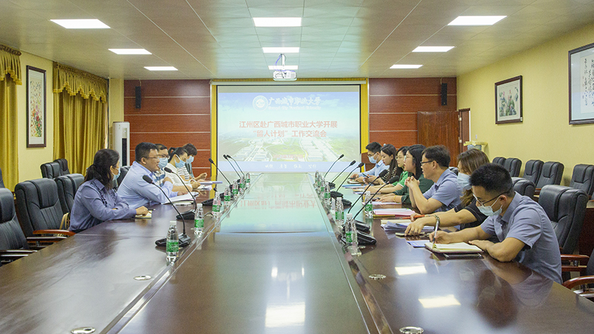 为加大人才引留力度,扎实有效做好支持大学毕业生留崇就业创业工作,4月12日,崇左市江州区委常委、组织部部长左涛一行7人来我校开展“留人计划”工作交流活动。我校学工部(处)处长梁杭杭,智能工程学院党总支书记余金永,商学院党总支书记赵容秀及崇左校区各学院主要负责人参加了交流会。