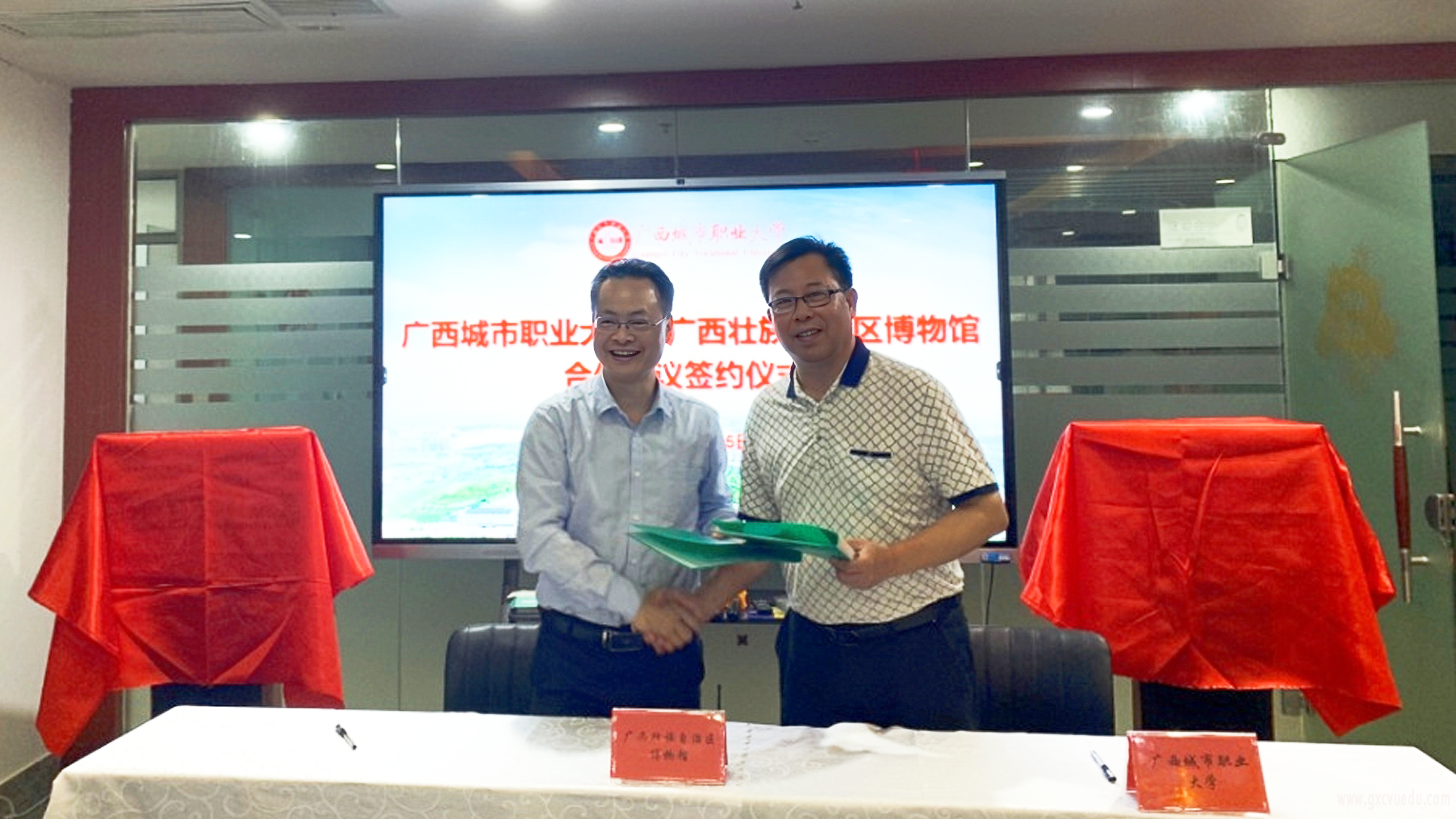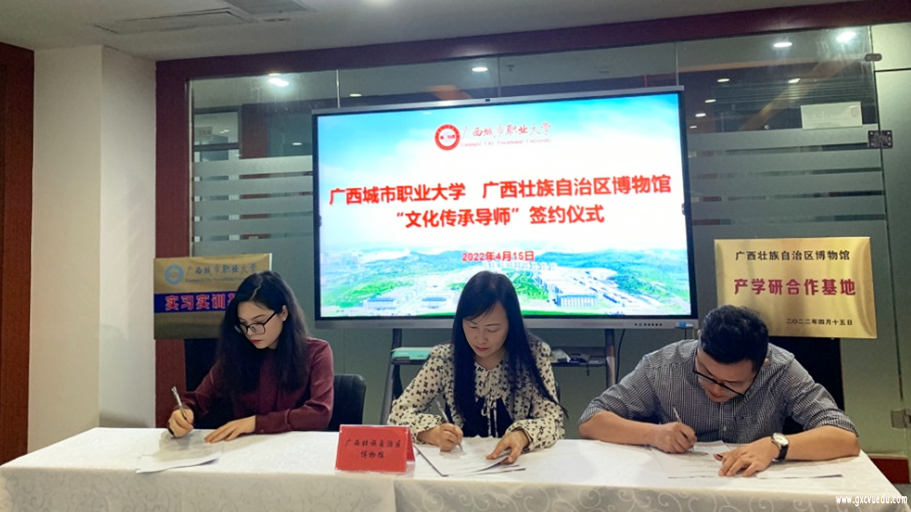 为实现我校教学资源与广西壮族自治区博物馆资源共享,经与广西壮族自治区博物馆协商洽谈,双方意向在人才培养培训、文化传承、文博产业、社会服务等方面开展深度合作,形成校馆合作、学展融合的共同育人机制。4月15日下午,我校与广西壮族自治区博物馆在广西本科职业教育研究中心举行合作交流协议签约仪式。