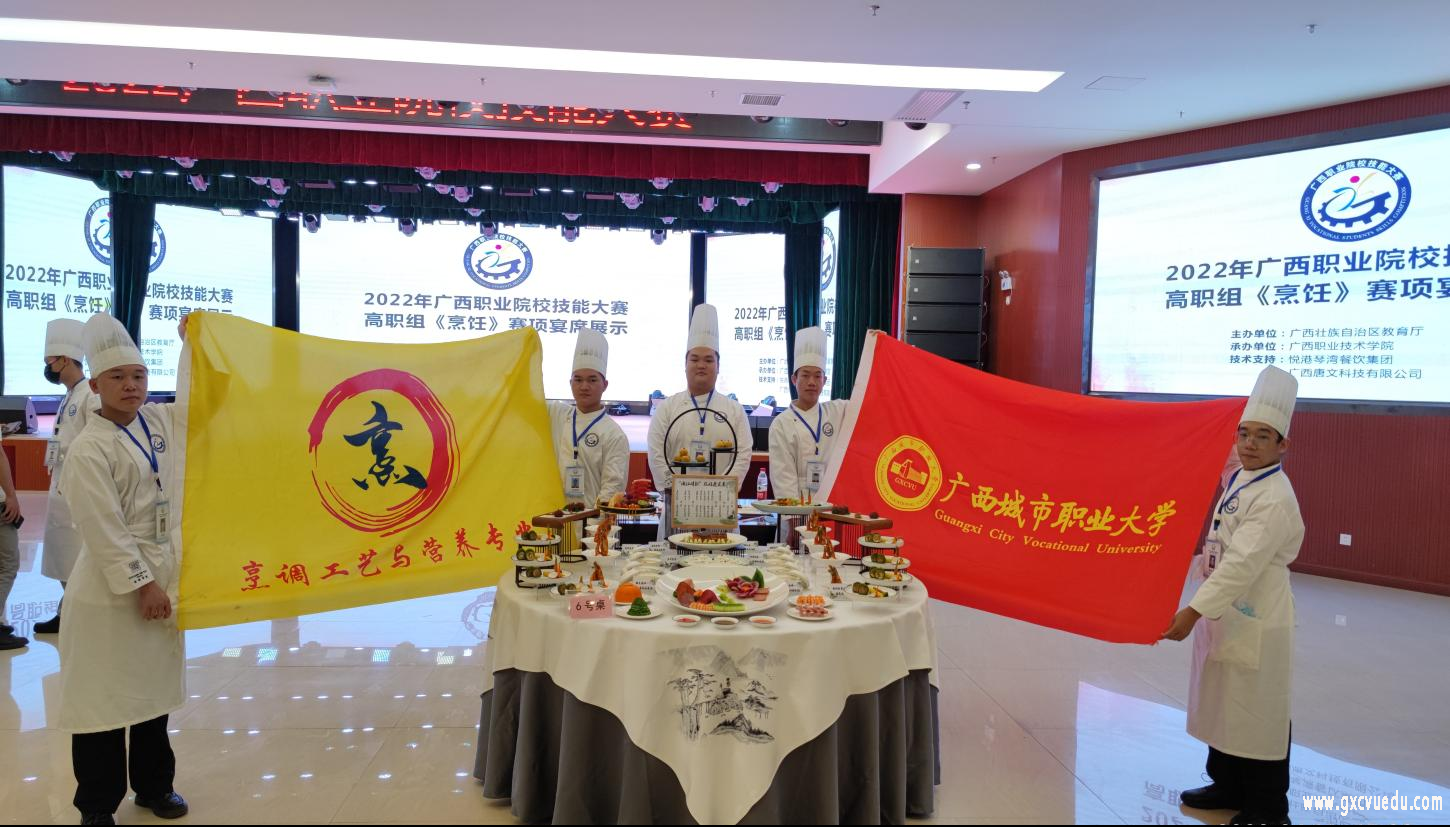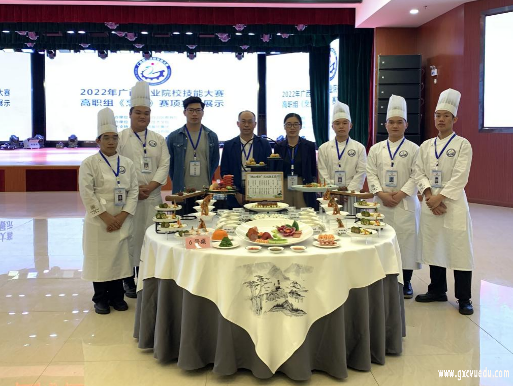 4月14至16日,我校管理学院烹饪工艺与营养专业吴志良、岑佳亿、覃嘉佳等10位学子在2022年广西职业院校技能大赛中,荣获高职组《烹饪》项目团体赛二等奖两项。广西职业院校技能大赛《烹饪》赛项为团体赛,参加此次大赛的职业院校共11所包括17个参赛队,大赛在广西职业技术学院举行。