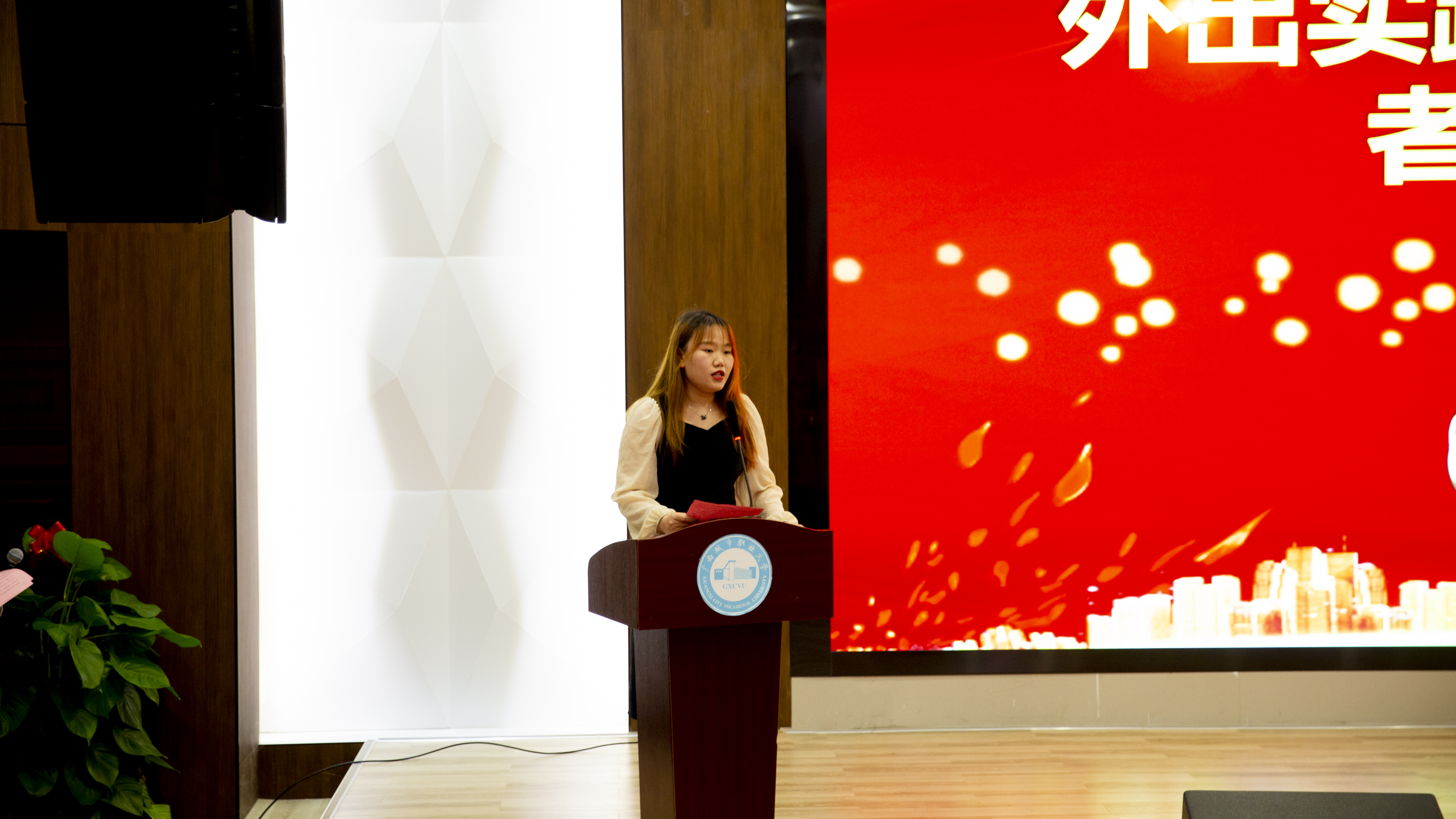 外出学习活动先进工作者代表P2021级工程造价专业的蒋雨晴发言,她表示,在实践中艰苦磨练,懂得了读书才是最好的出路。在社会顶岗实习中认清自我,实现自我价值。