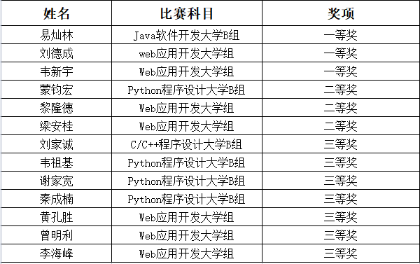 为迎接此次比赛,我校信息工程学院从去年12月开始动员报名,正式比赛前,积极组织学生参加线上培训。此次比赛获奖,树立我校学生程序设计能力的自信,培养年轻教师的组织能力,积累此类竞赛培训的经验。我校获奖学生名单具体如下: