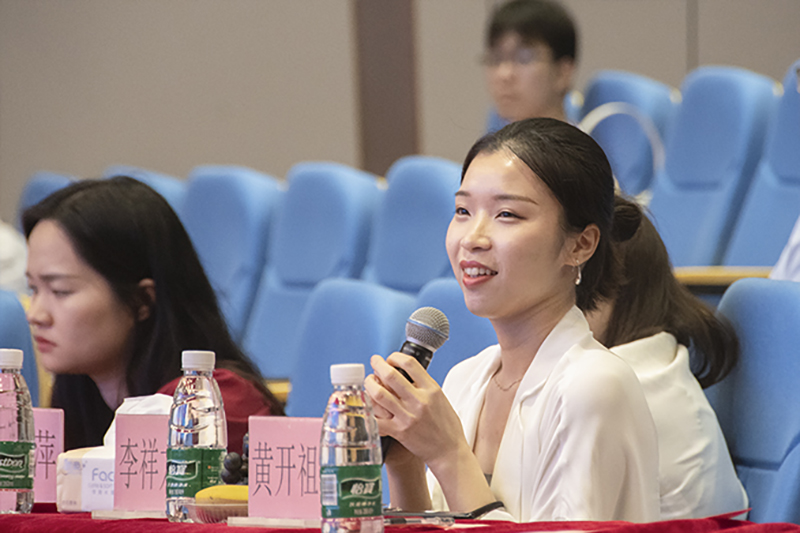 康玉萍老师从演讲内容和演讲技巧等角度对选手们进行专业点评,并通过提问的方式,与选手们探讨本次资助演讲比赛的目的,希望同学们树立远大理想,用真才实学反哺国家、回报社会,做一位懂得感恩的有志青年。