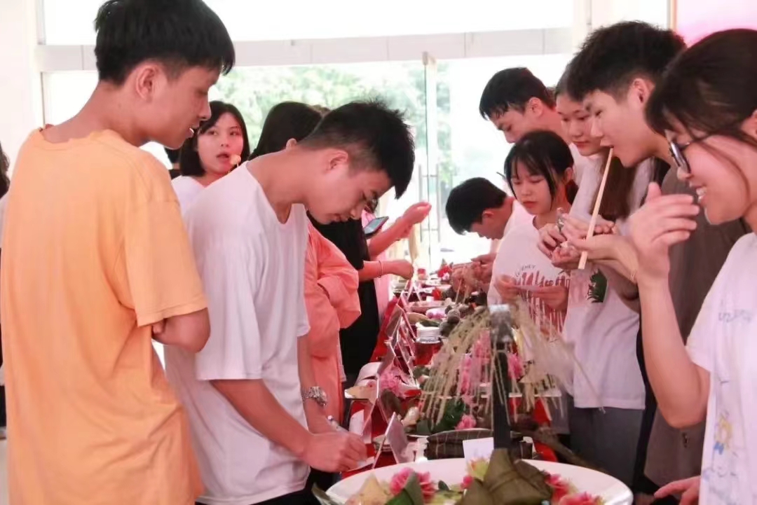 目前各学院正如火如荼地进行包粽子比赛、龙舟制作比赛。水晶粽子、咸蛋黄肉馅粽子、绿豆肉馅粽子、水晶紫薯粽子、灰水粽子,“超人”龙舟、“表情包”龙舟、“粽子”龙舟……各学院内部进行评选后会把优秀团队及作品推送至校级评选展示。