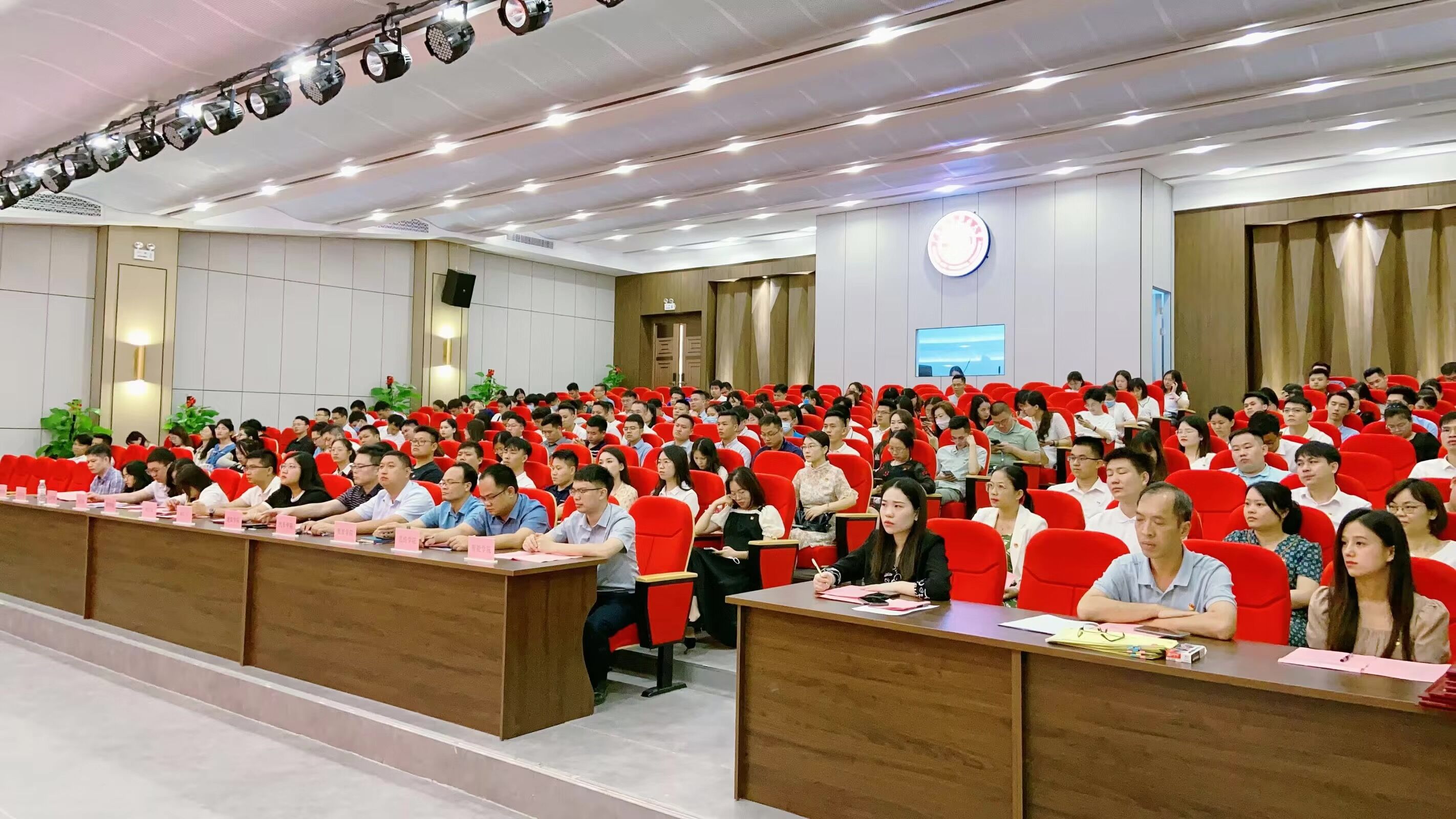 在雄壮的国歌声中,大会拉开帷幕。2021至2022年以来,学校各级党组织和广大党员认真学习贯彻习近平新时代中国特色社会主义思想和党的十九届五中、六中全会精神,围绕迎接党的二十大推动各项工作取得新进展,认真开展党史学习教育,谱写学校发展新篇章。