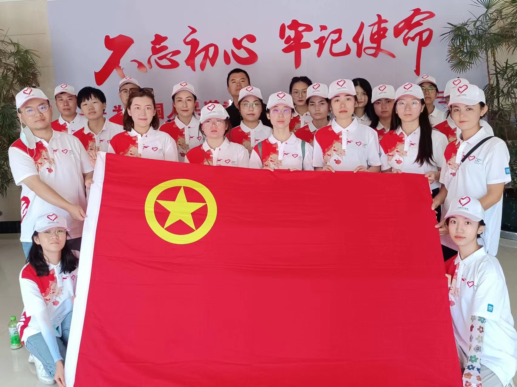 罗舒卓与志愿者们在基地合影