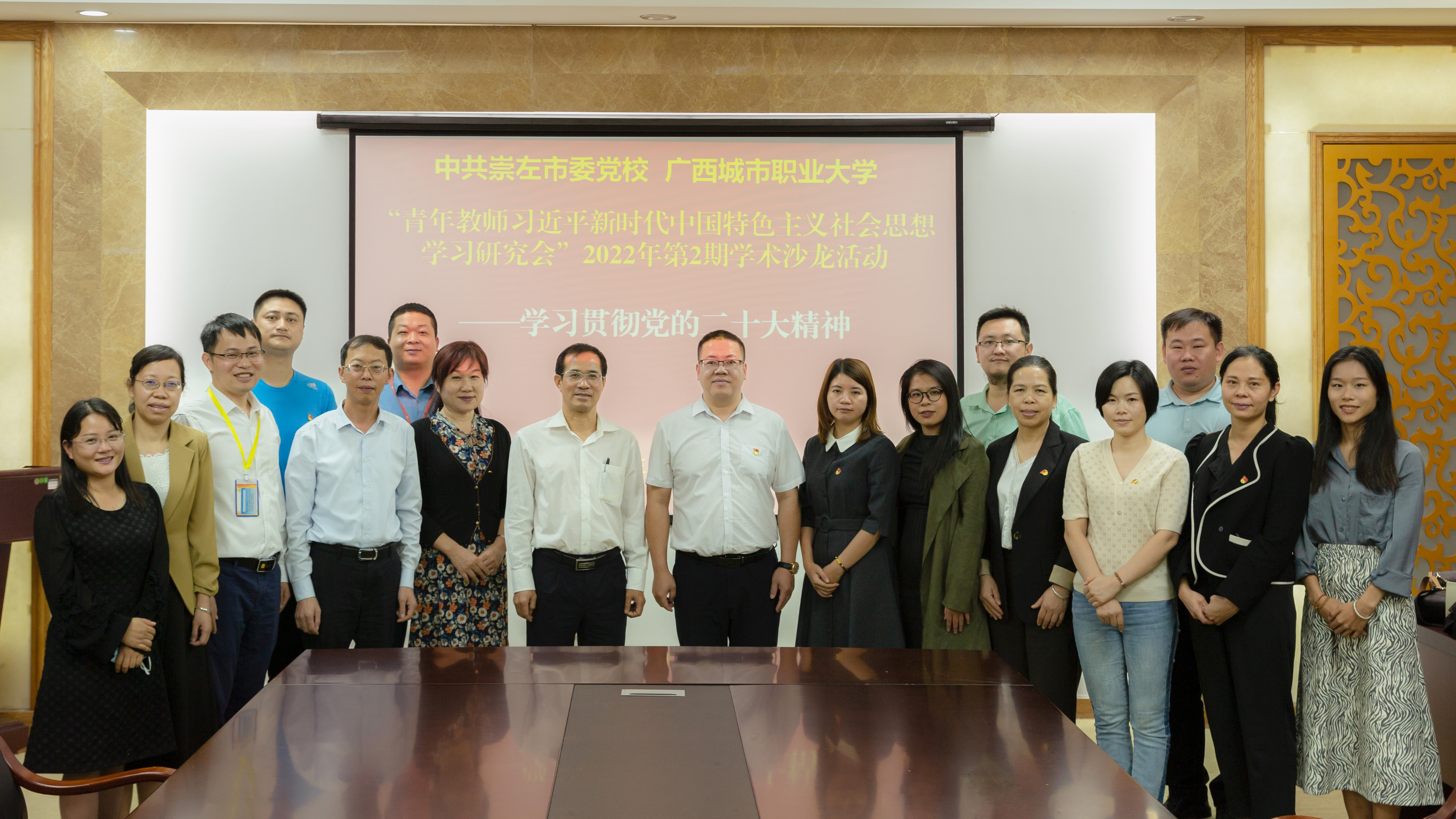 11月3日,中共崇左市委党校与我校马克思主义学院“青年教师习近平新时代中国特色社会主义思想学习研究会——学习贯彻党的二十大精神”学术沙龙活动在崇左市委党校会议室举行。中共崇左市委党校常务副校长李勤、副校长莫裕红、副校长蒋先汝等党校教师,我校马克思主义学院副院长蒙振海、教授李彩云等马院教师参与学术沙龙活动。中共崇左市委党校副校长蒋先汝主持活动。