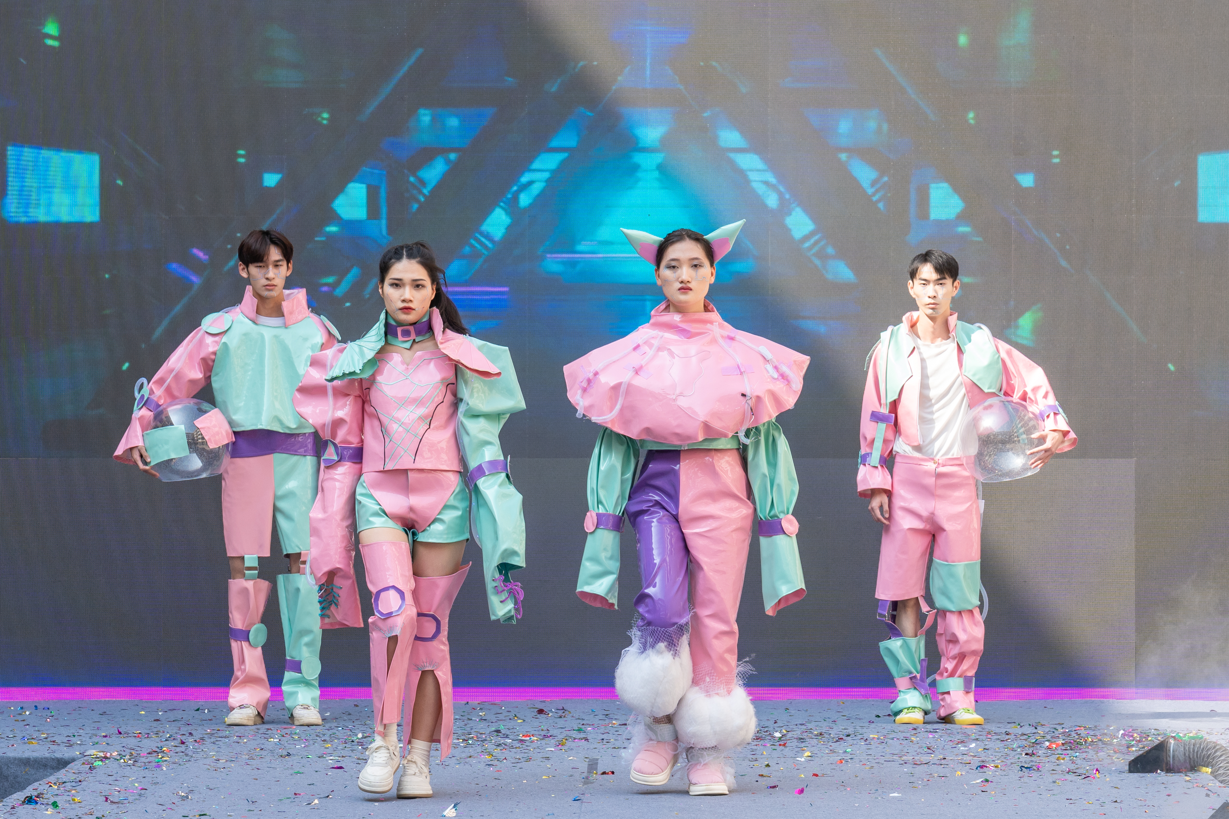 开幕式上,动漫专业和服装设计专业以T台秀的方式,为现场观众诠释本次毕业作品展的主题“超越·融合”的魅力。设计师们运用剪纸、壮锦、舞狮、京剧脸谱等文化元素,融合蝴蝶、网纱、手工编织等素材,在融合传统文化元素的同时,结合现代技术,以服装为载体,让民族文化元素在这次毕业展中迸发出新的魅力。