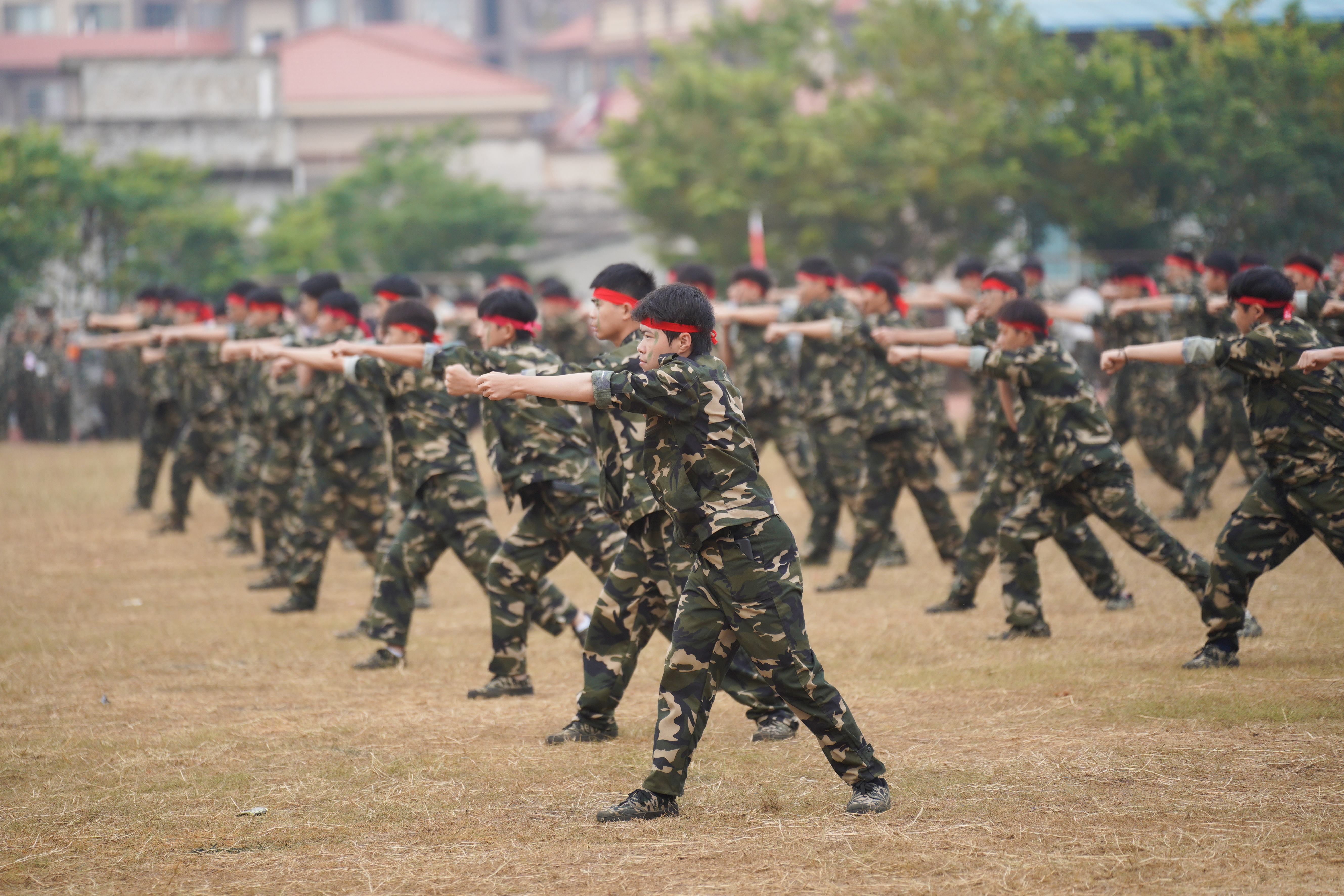 大会伊始,伍鹏志书记、李中华校长分别在空港校区和崇左校区对各连队进行检阅。接着,伴随着雄壮的进行曲,分列式队伍阔步入场,各连分列式方队气势如虹、斗志昂扬,依次经过主席台接受检阅,同学们精神状态饱满,动作整齐划一,口号势破云霄,尽显军人风范。
