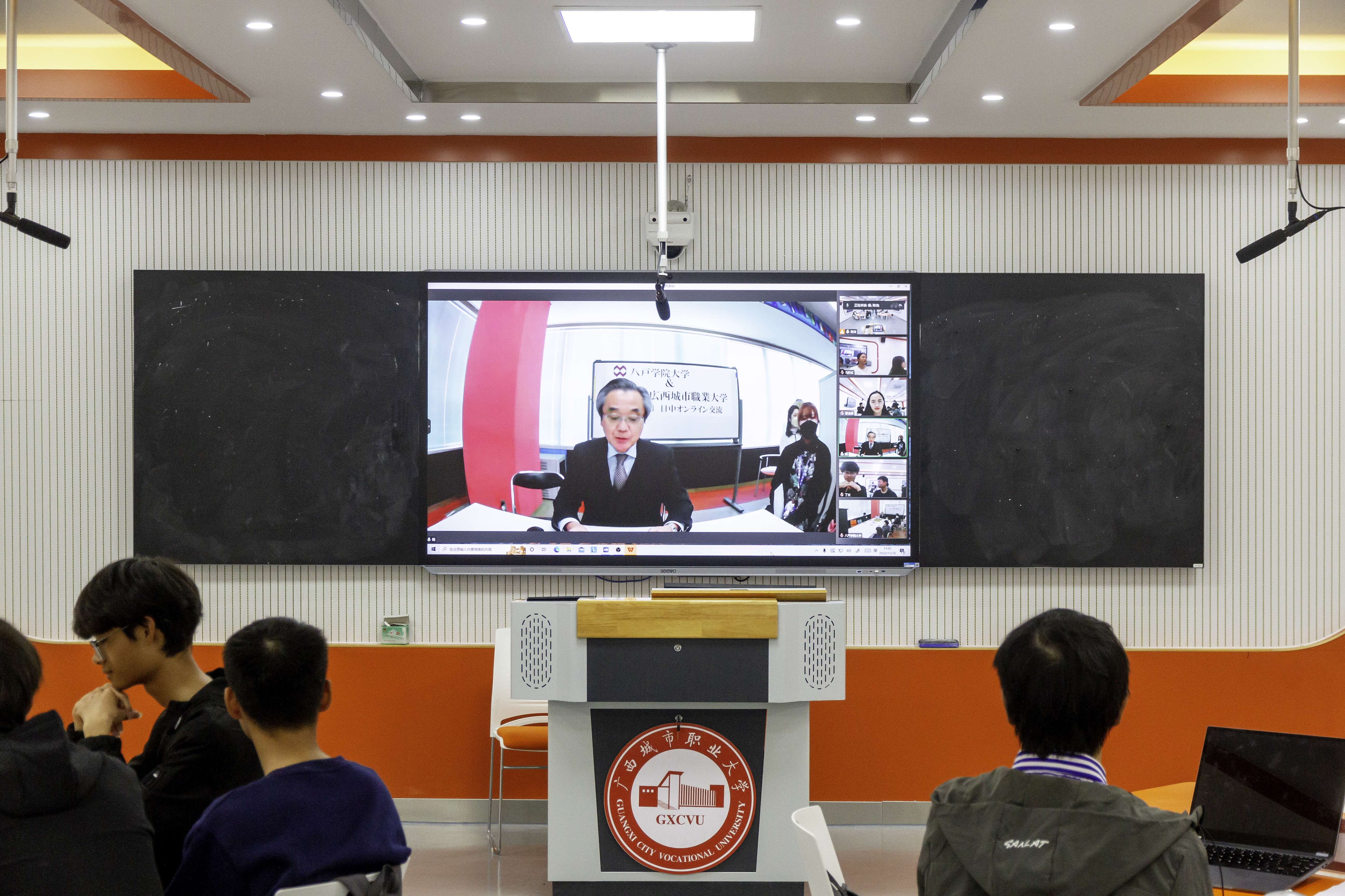 交流会上,两校学生围绕各自的学习生活、兴趣爱好等话题畅所欲言。我校学生代表向日本八户学院大学学生介绍了广西壮族自治区概况,分享中国网络上的新词等;答疑环节上,双方学生代表提出在日常生活、学习中遇到的疑问,并针对疑问相互进行经验分享,成功拉近两校学生的距离,达到了两校开展线上交流的真正目的。