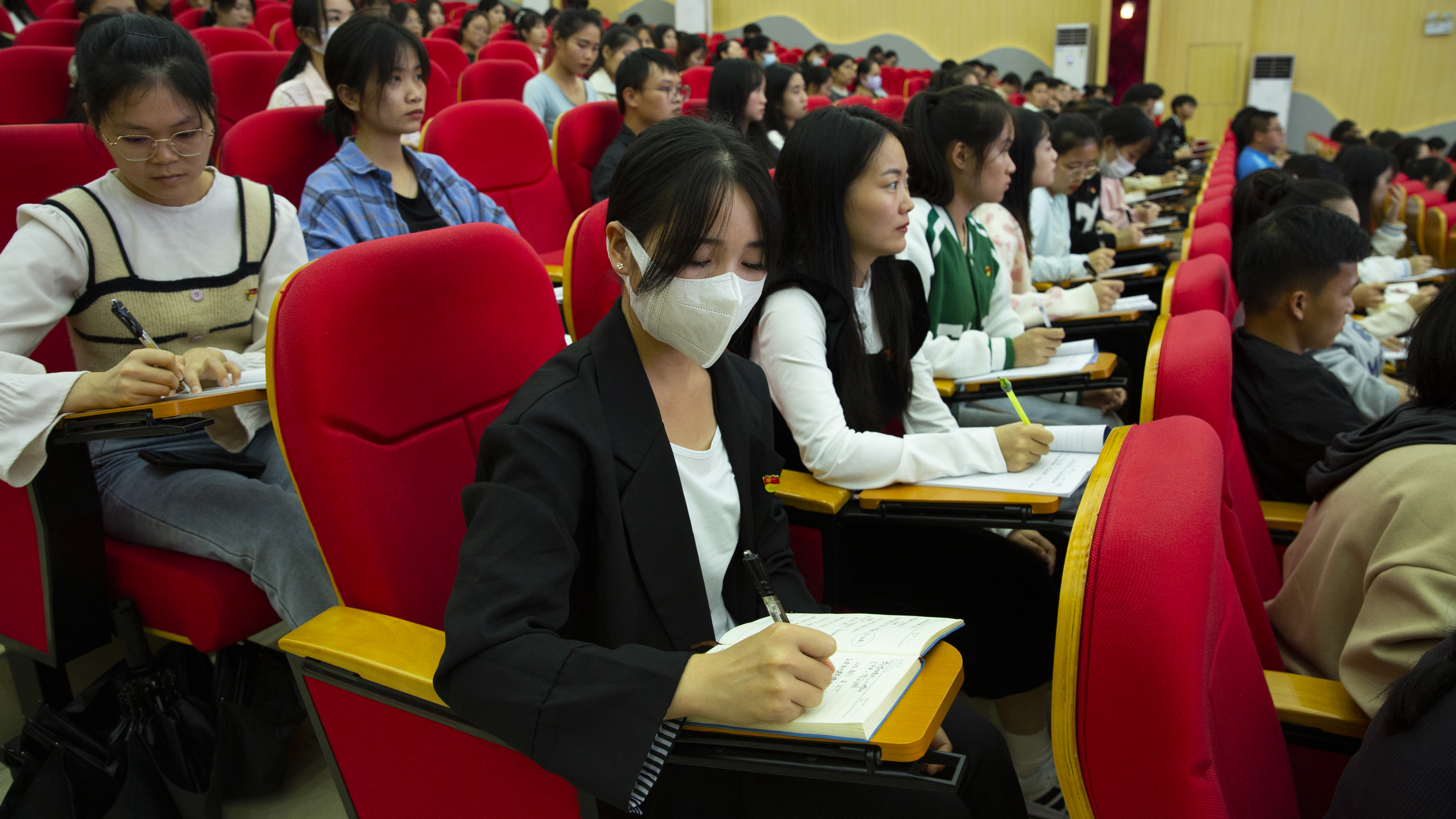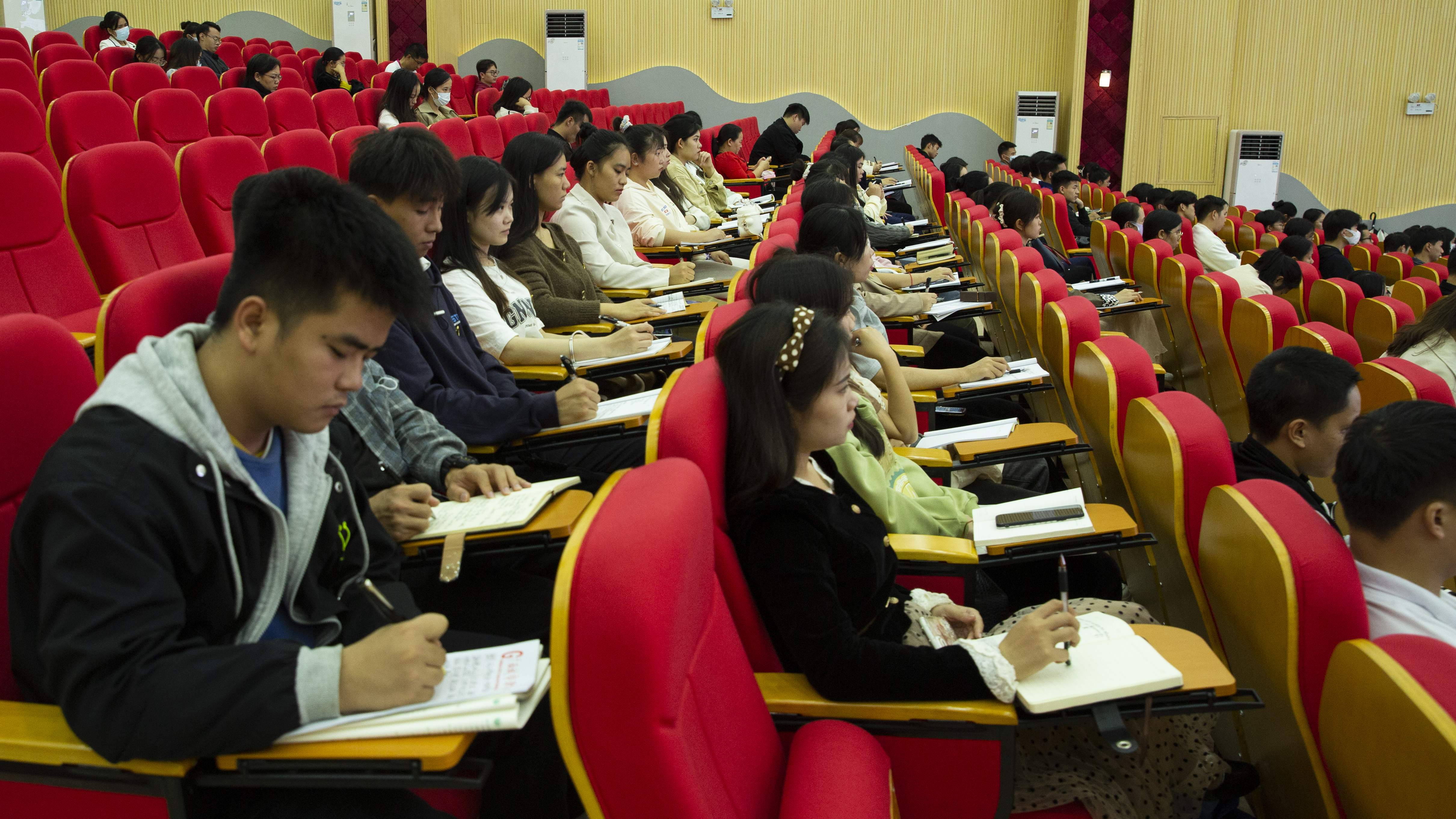 学生在认真做笔记