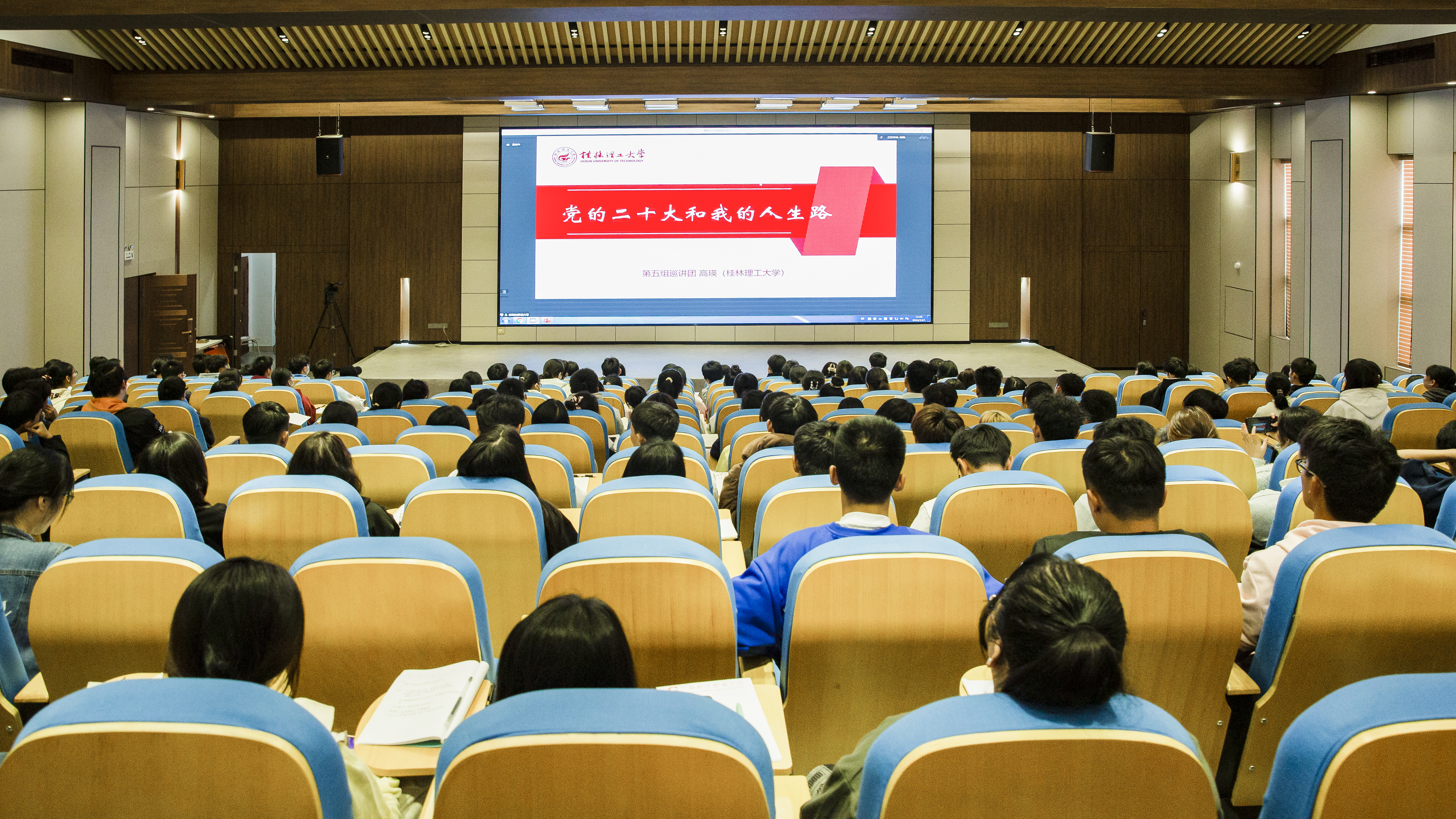 为深入学习贯彻党的二十大精神,切实把全校广大党员师生的思想和行动统一到会议精神上来,12月1日,全区高校学习宣传党的二十大精神第五组巡讲团在线上开展党的二十大精神宣讲会,我校各学院党员师生在崇左校区15区报告厅收听收看宣讲会。