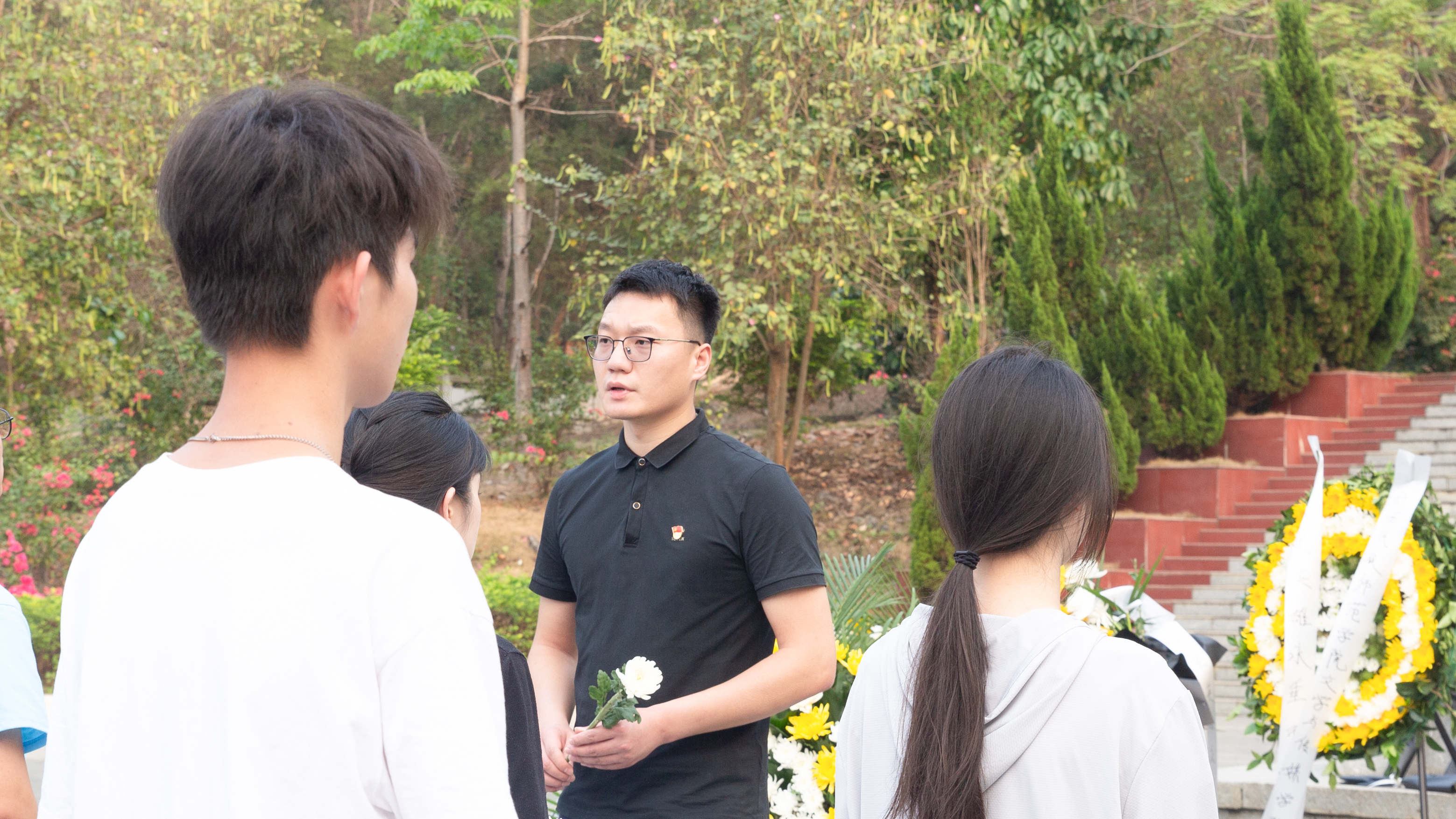 活动伊始,校团委办公室副主任葛易杰老师向在场师生介绍革命烈士纪念碑的概况,他谈到,在土地革命战争至对越自卫反击战时期,无数烈士英雄做出了杰出贡献,表达了自己对革命先烈英勇献身的崇高敬意,希望师生代表们继承和发扬革命先烈的爱国主义精神,不忘初心,肩负使命,积极为祖国的建设贡献力量。