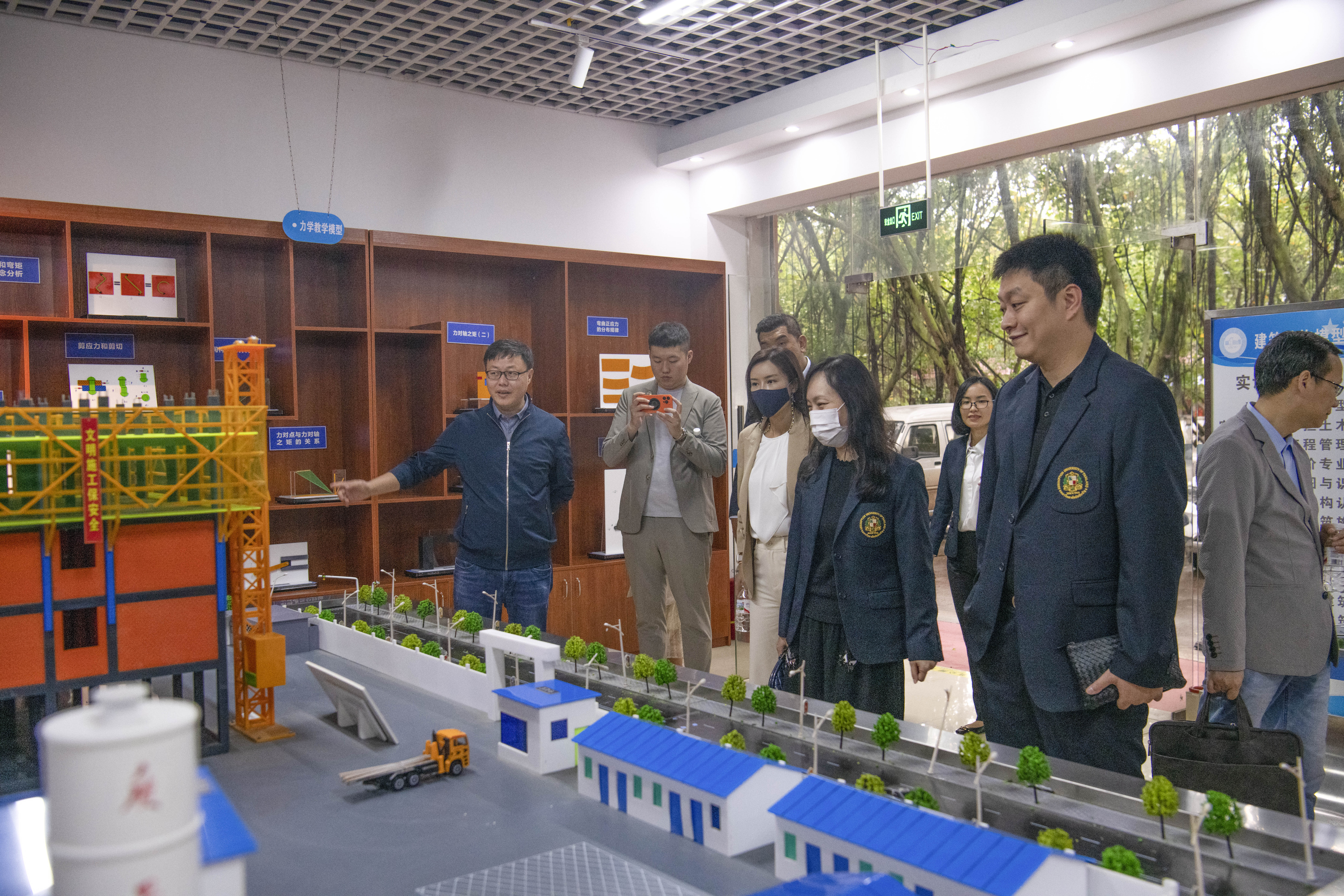 在我校领导老师的陪同下,交流团参观了崇左校区、空港校区独具特色的校园文化景观,并认真考察了机器人技术专业实训基地、高铁实训室、建筑实训基地等。
