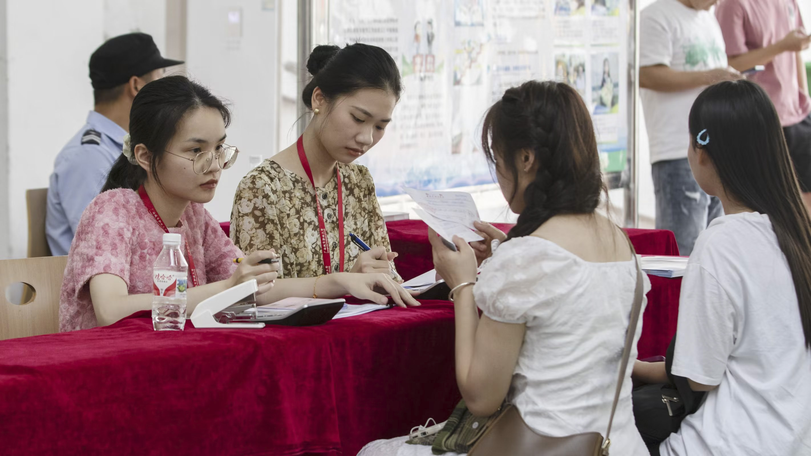 班主任给新生办理入学手续