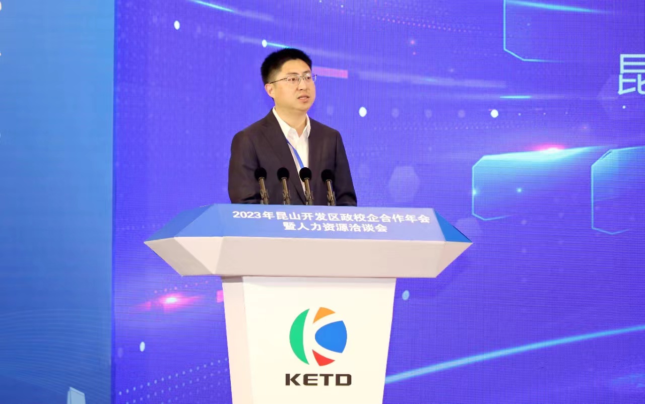 为进一步深化政校企合作,推动校企资源优势融合互补,5月24日,江苏省昆山开发区举办政校企合作年会暨人力资源洽谈会,昆山开发区党工委委员、管委会副主任王超,昆山人力资源市场党委书记、市人社局党委书记、局长何智勇,区人社局、经促局、科技局、综保区管理局相关负责人,以及合作院校和区内重点企业代表参加会议。