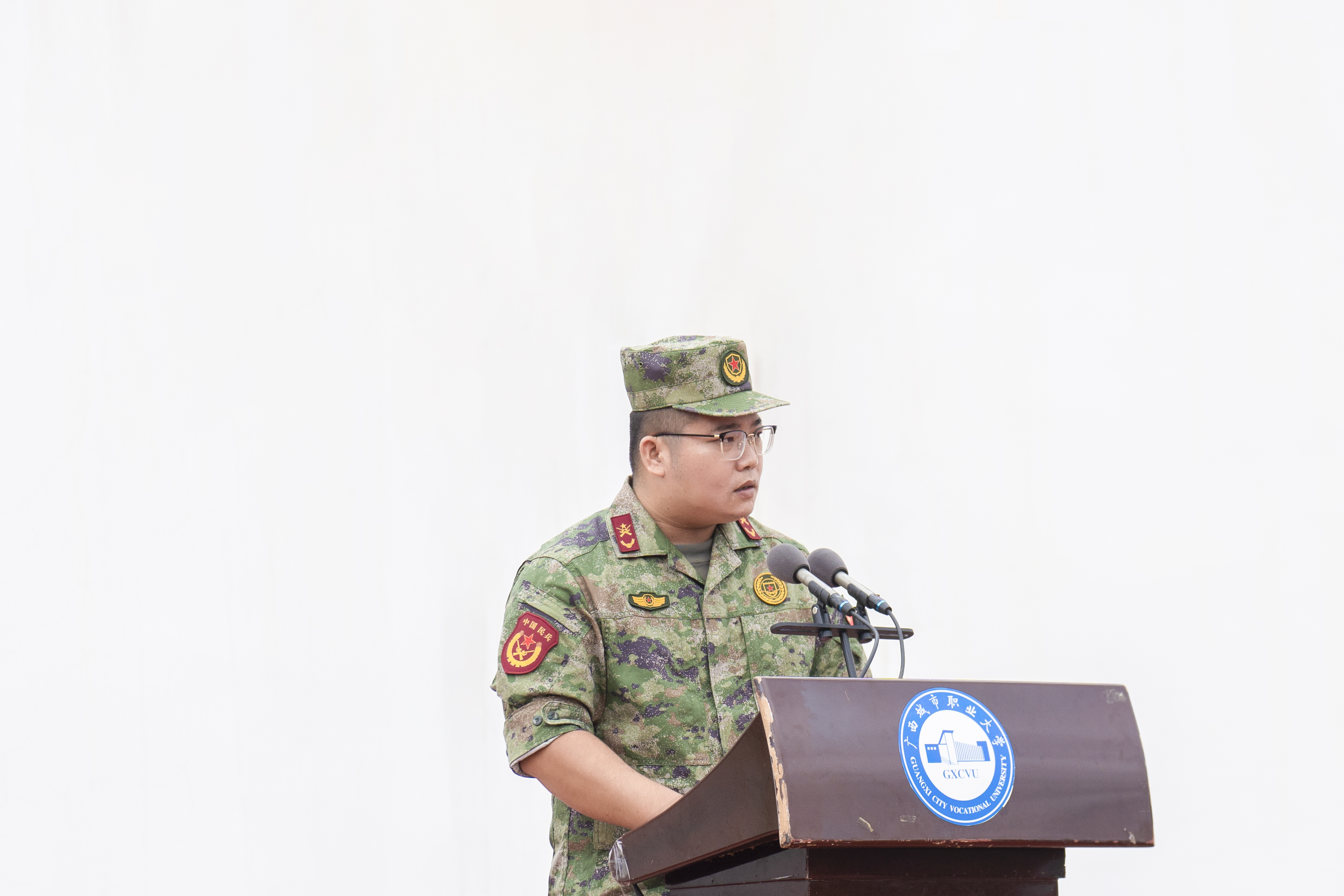 王友良教官和何明轩教官作动员讲话,他们表示,广大学生在军训期间要以军人的标准来严格要求自己。一切行动听指挥,要有吃苦耐劳的意识。军训不仅仅是锻炼身体的机会,更是培养品质、锤炼意志的重要阶段。教官要求同学们坚持爱国主义情怀、严格遵守训练纪律、培养团结互助的精神、勇于迎接挑战。