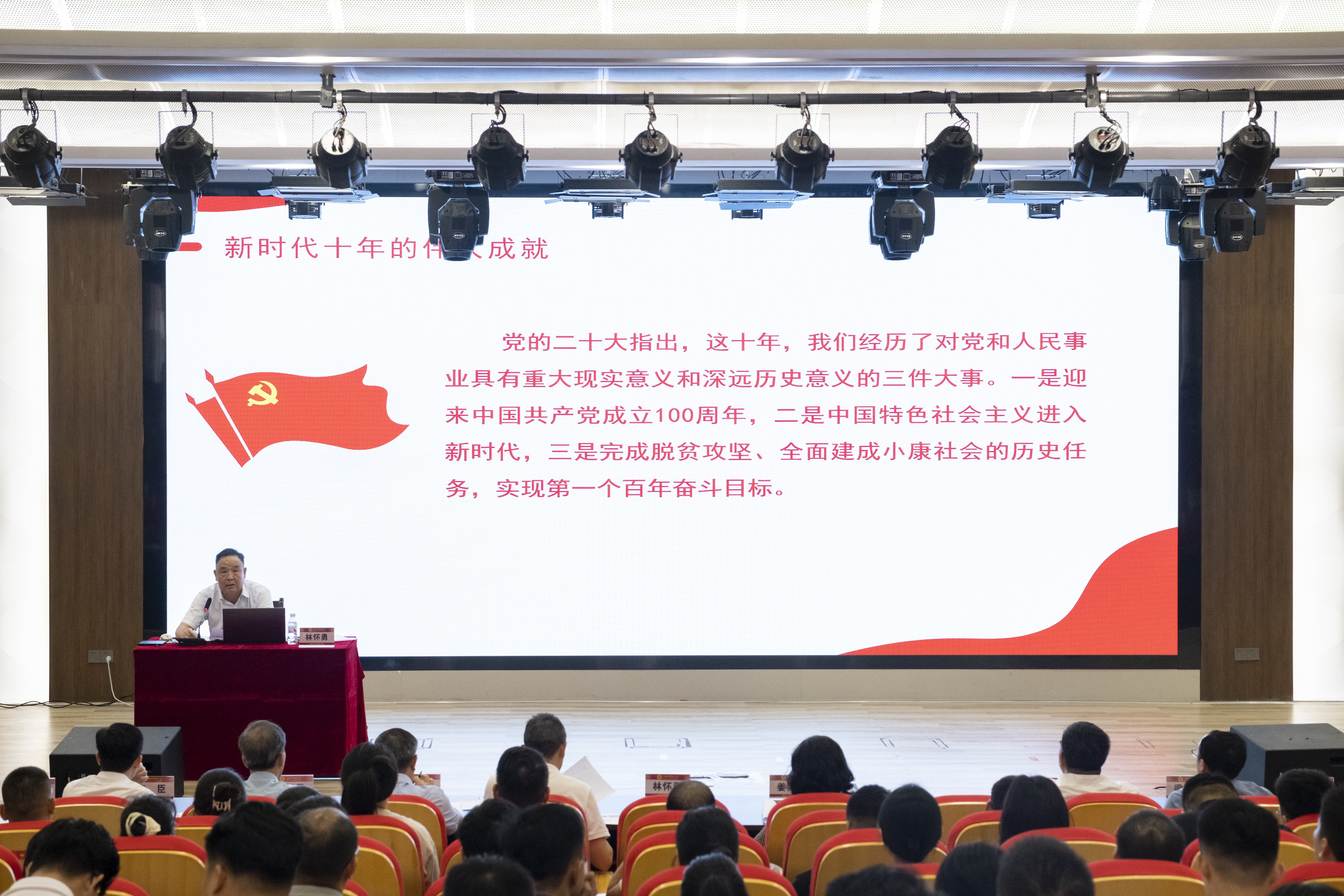 6月25日上午,自治区党委统战部常务副部长林怀勇到我校围绕学习贯彻习近平新时代中国特色社会主义思想主题教育,结合职业教育发展实际,给我校师生们开展了一场主题鲜明、理论深刻、内容丰富的思想政治教育讲座。