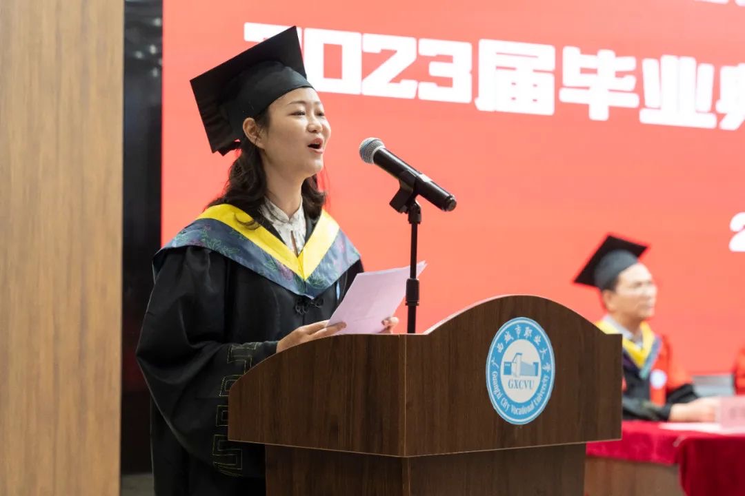 “感谢学校和老师悉心教导和精心栽培四年来,我们在这里获得了不一样的果实,有知识、技能、友情、爱情、人生哲思。未来还有更多人和事值得我们期待,相信我们都能在自己的岗位上有所作为,展现我们城职大学子的独有风采!”优秀毕业生代表姜润萍说。