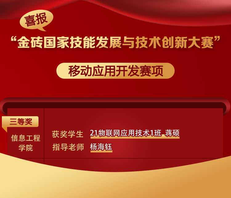 蒋硕同学获“金砖国家技能发展与技术创新大赛” 移动应用开发赛项三等奖