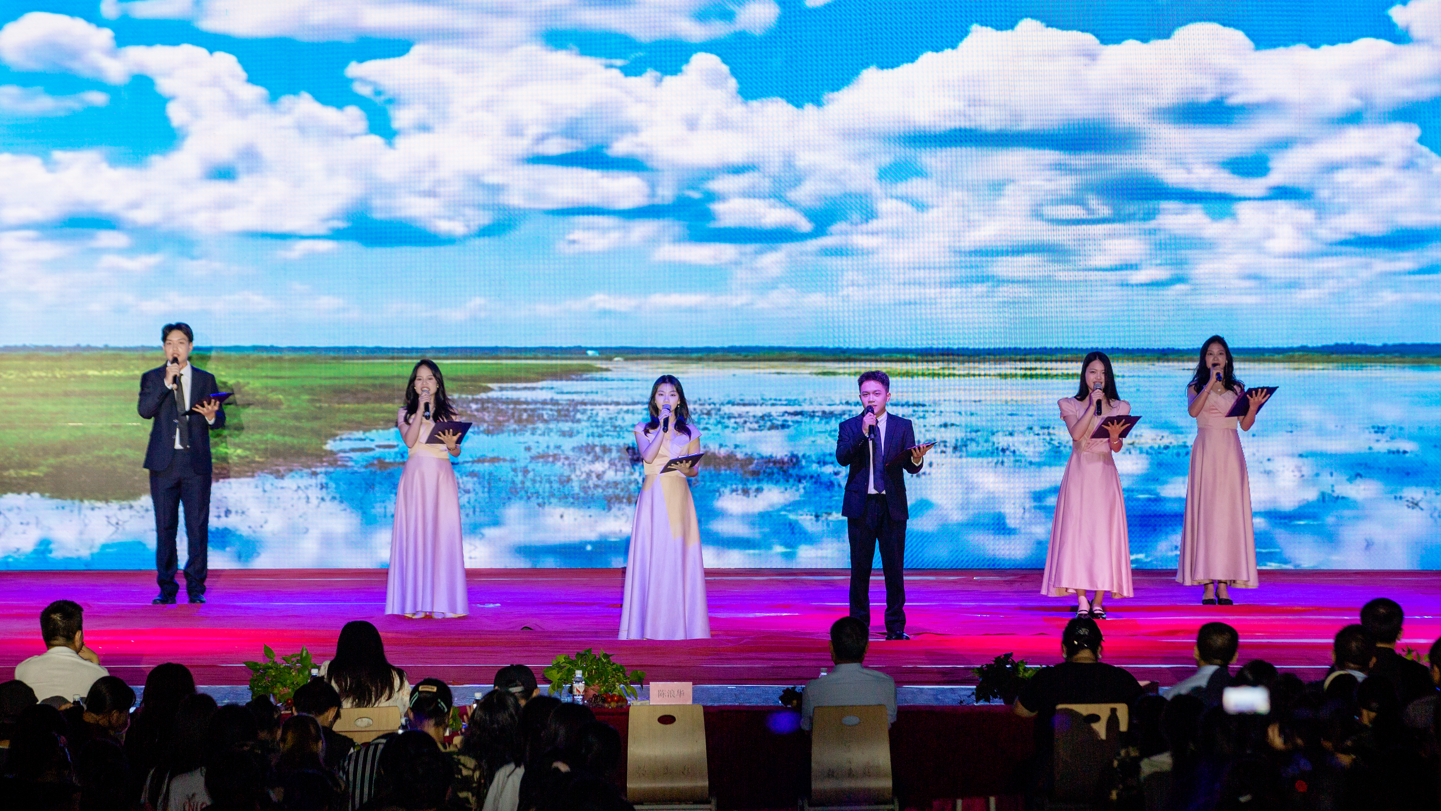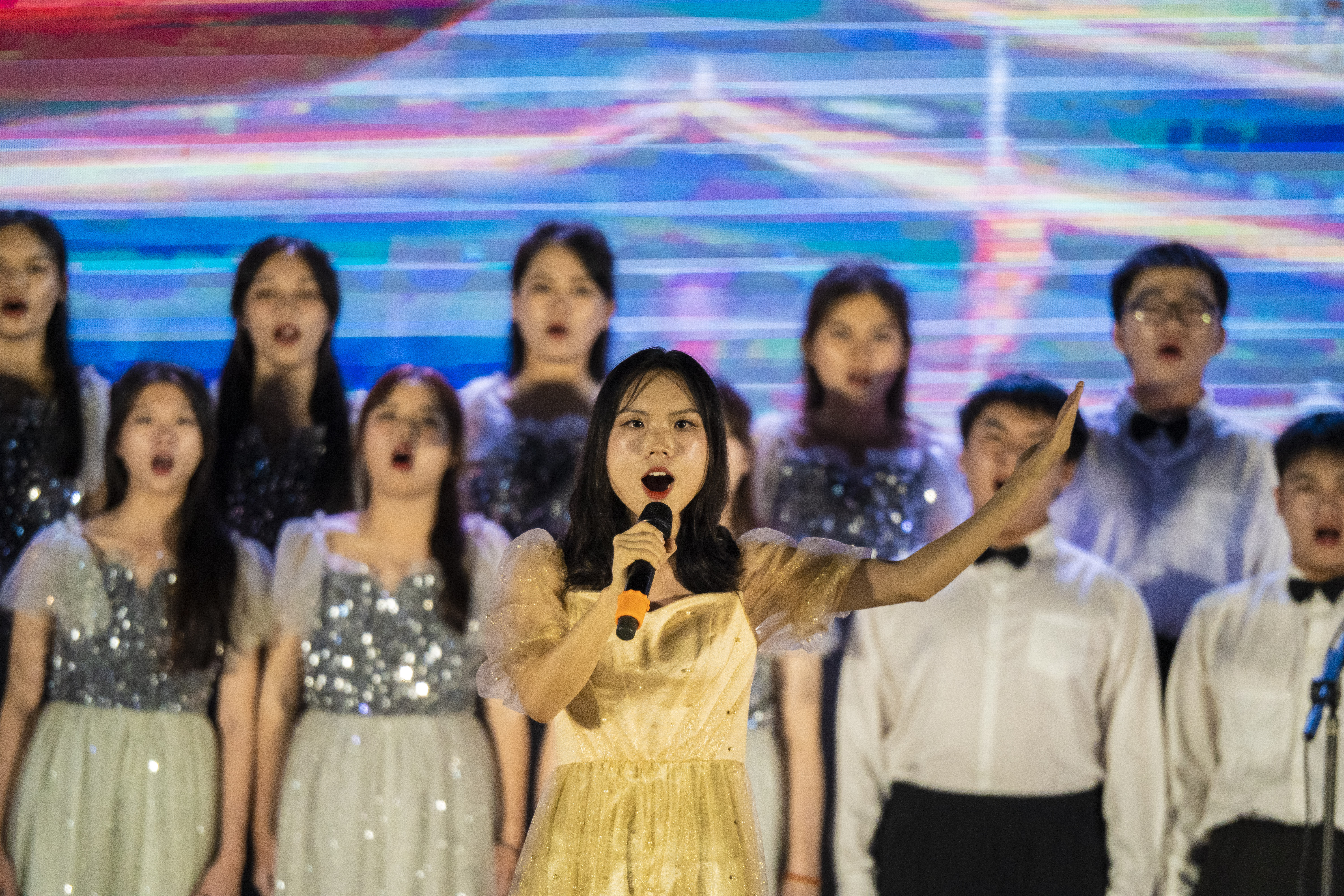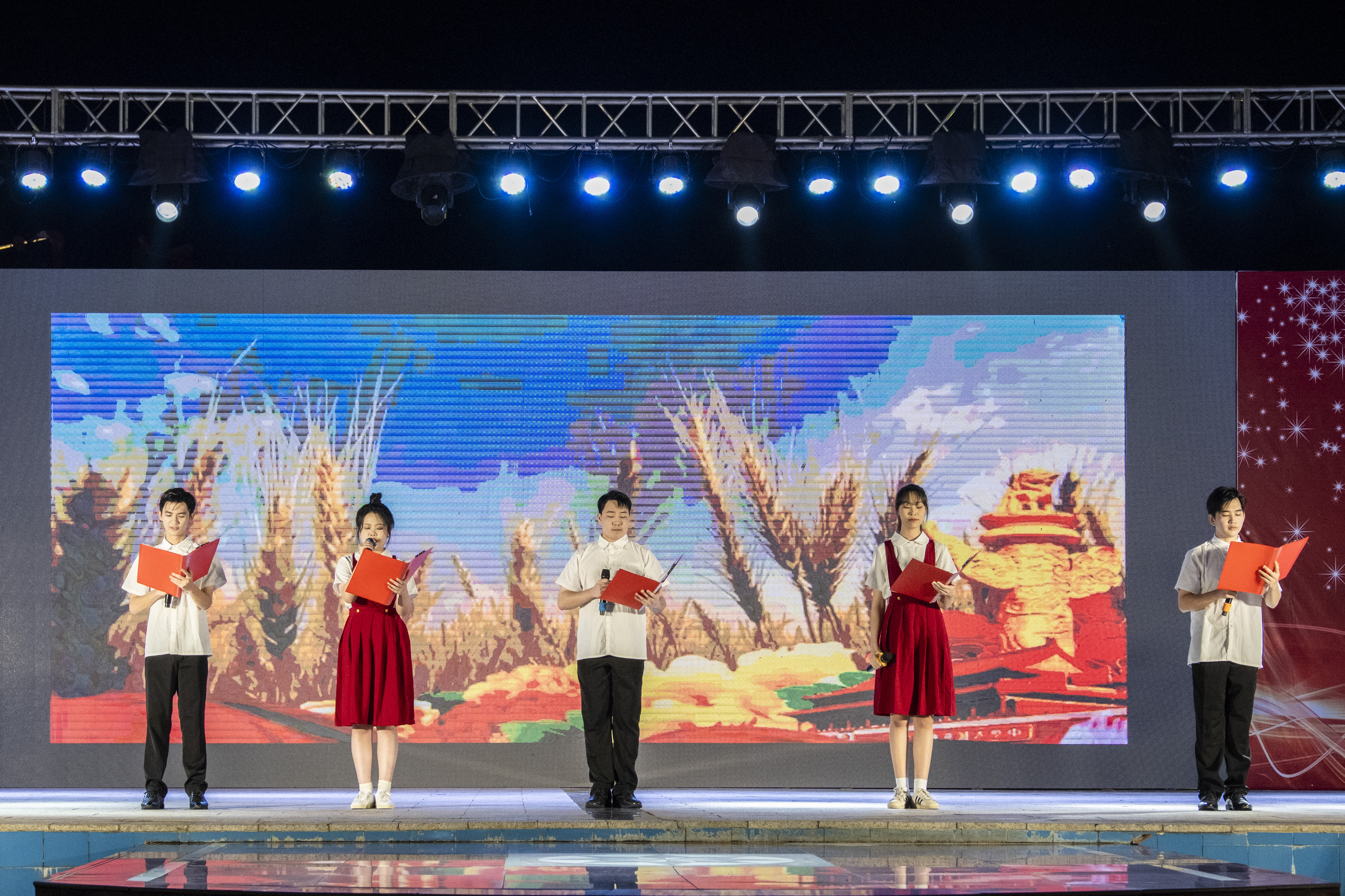 绚丽的舞台、耀眼的灯光、跳跃的音符...本次晚会以舞蹈、歌唱、朗诵等形式,给现场的观众带来一场视觉盛宴。