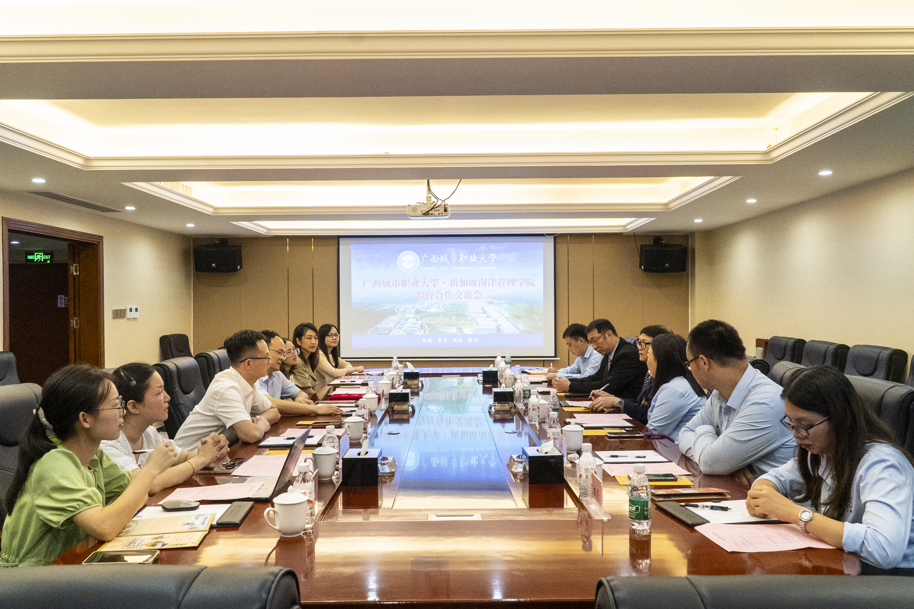 新加坡南洋管理学院院长MR.KHOO KIAM HWEE RAYMOND对学校的热情接待表示感谢,并介绍了新加坡南洋管理学院留学生服务中心的基本情况、新加坡南洋管理学院的优势专业、与国内高校合作的项目等情况,双方就师生提供升学深造资源等合作方向进行了深入的沟通和探讨,为深入合作奠定了基础。