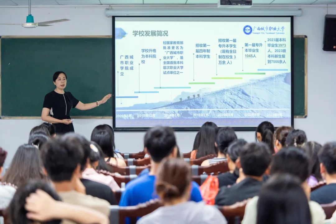 9月20日上午,在空港校区厚学楼阶三教室为2023级新生讲授“勇立职业本科教育潮头,争做德技双优职业人”第一课。