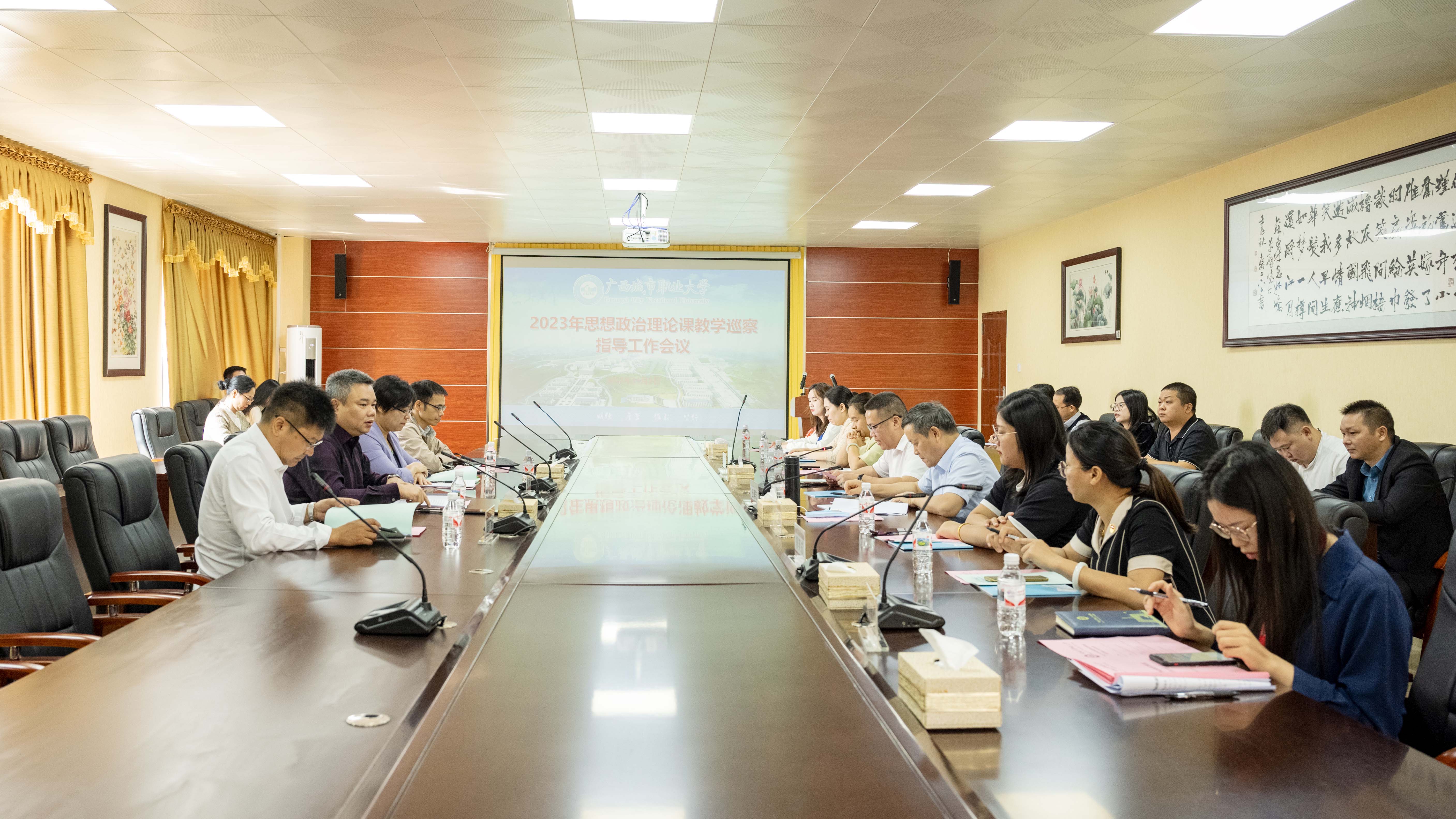 汇报会上,伍鹏志书记分别从学校基本情况、“习近平新时代中国特色社会主义思想概论”课程建设情况、思想政治理论课建设情况、2022年巡察存在问题及整改情况等四个方面向巡察组作工作汇报。除此之外,巡察组还通过课堂听课、召开师生座谈会、查阅资料等方式深入了解我校思想政治理论课教学和建设情况。