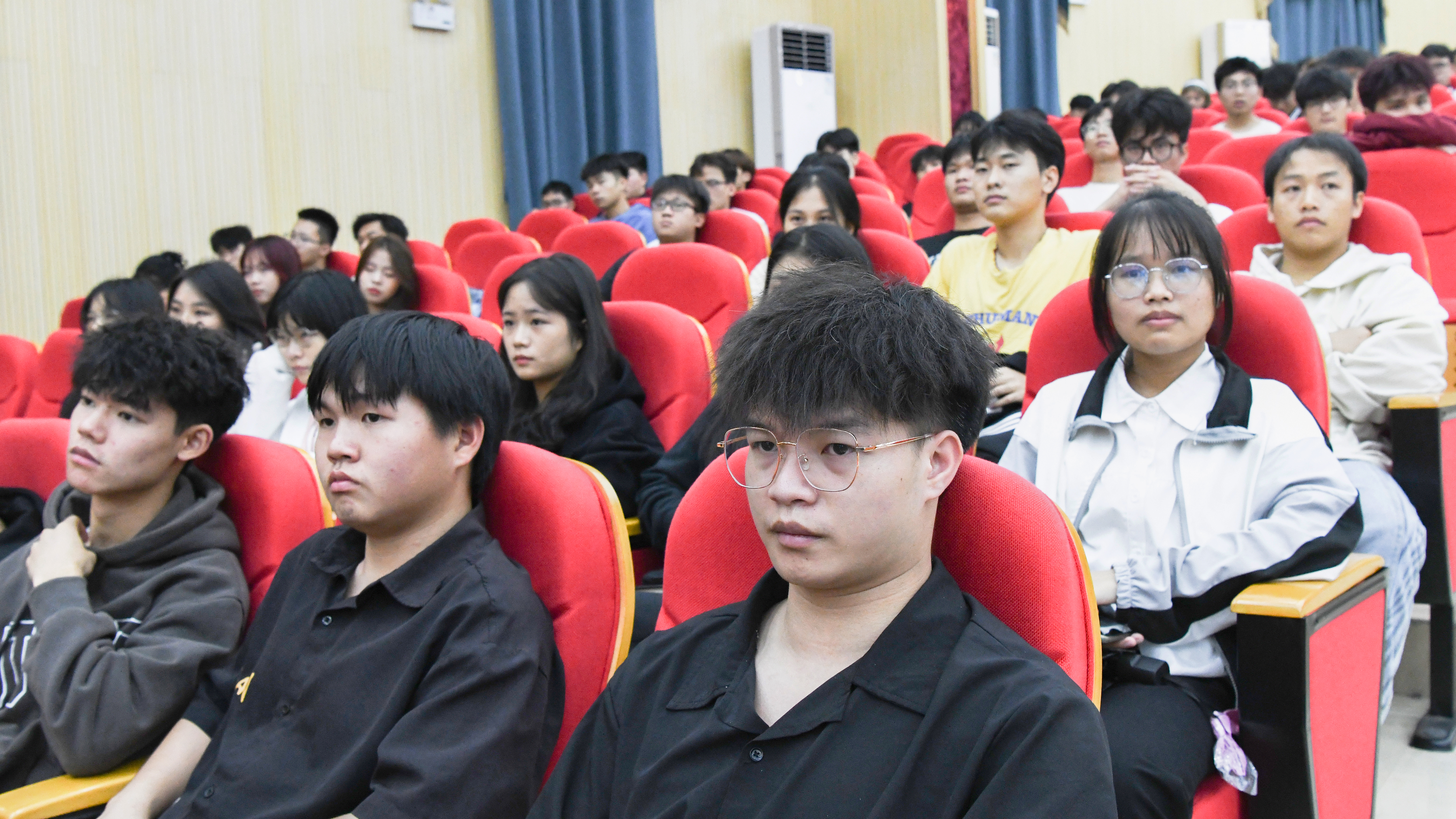 现场同学、老师们认真观看影片