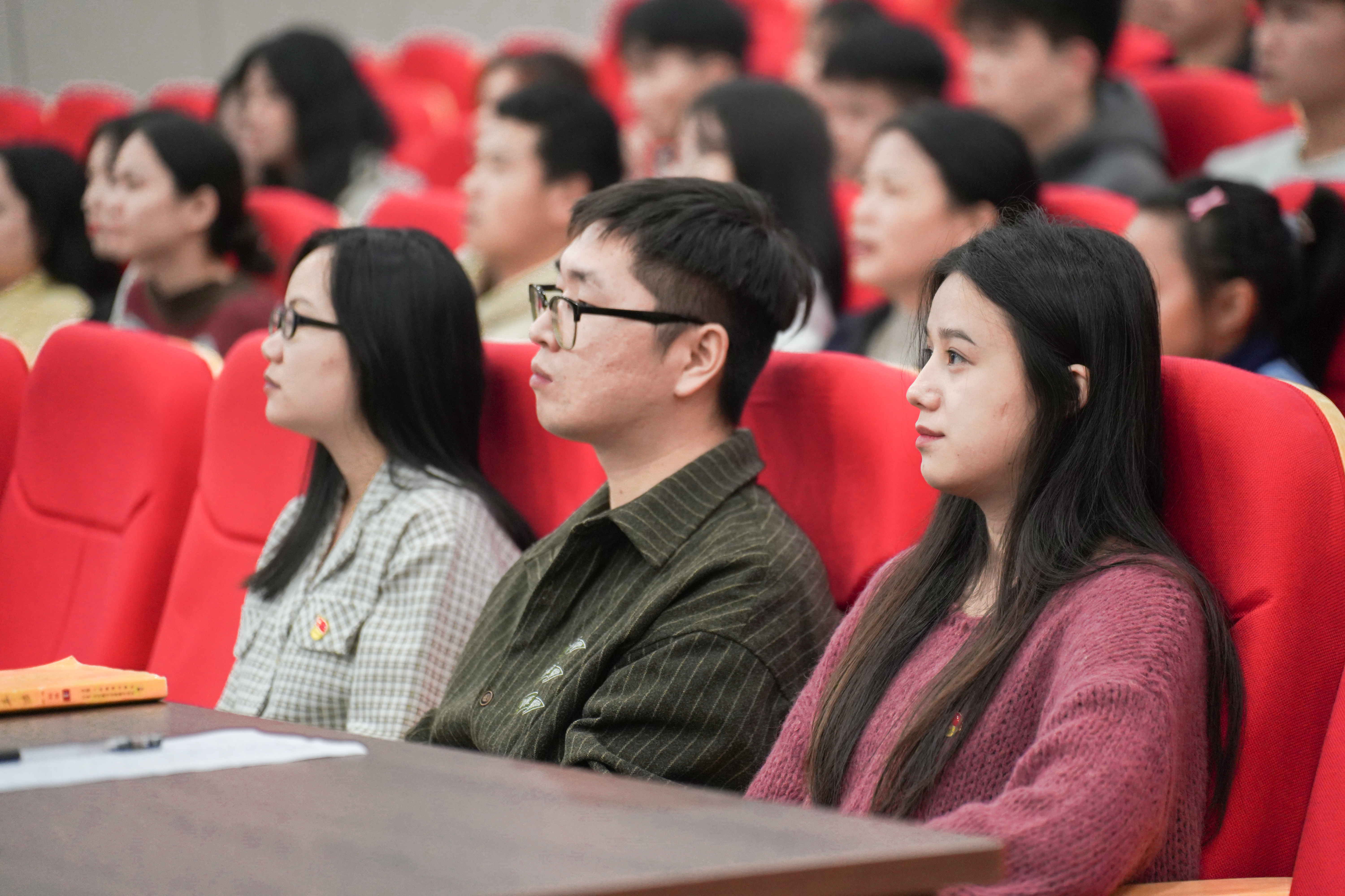崇左校区阶梯三内,党员同志们观看《征程之星火》影片