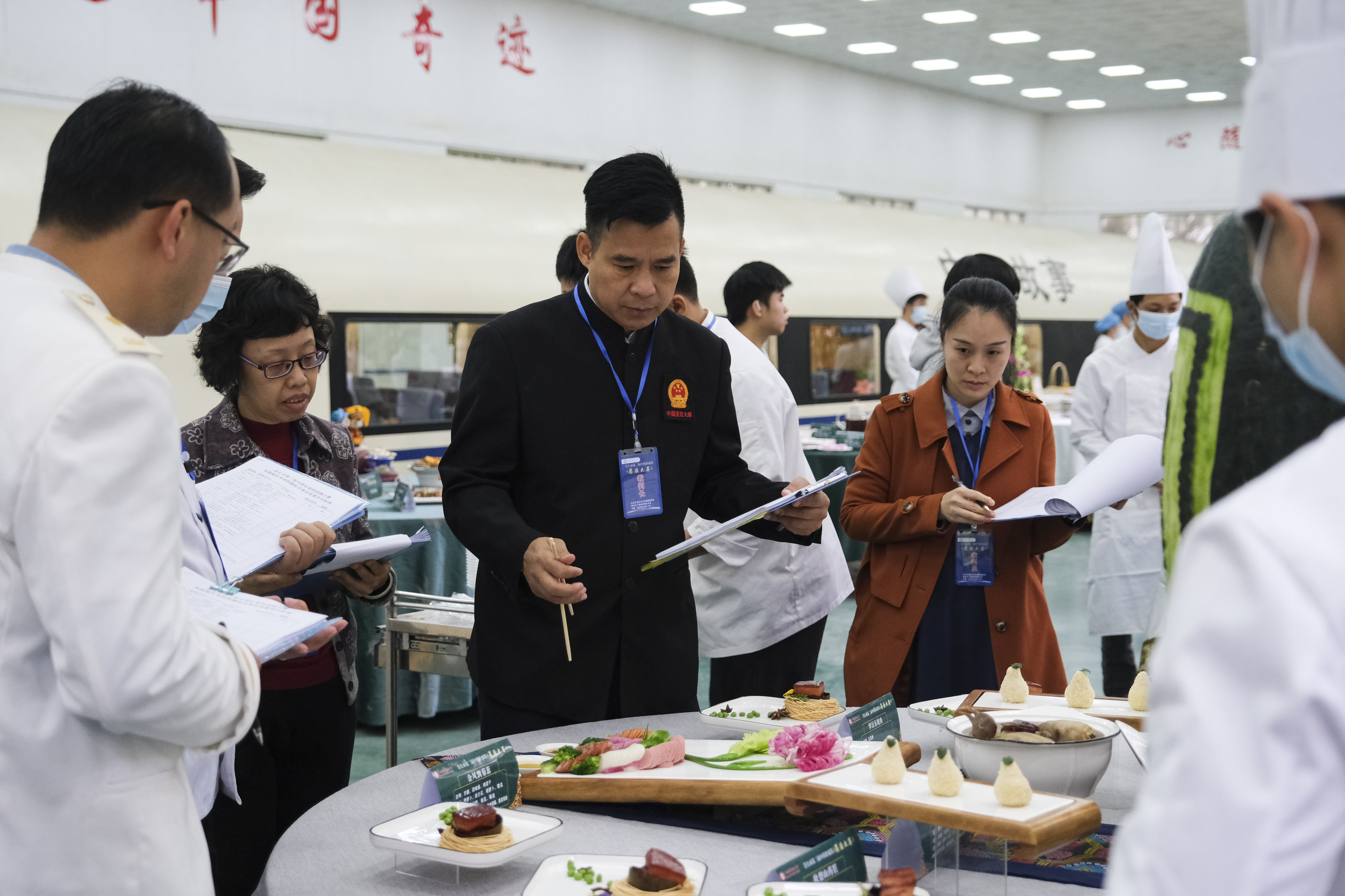 注册中国烹饪大师、中国烹饪协会文旅美食专业委员会副主席、2022年北京冬奥会、残奥会餐饮保障运营团队行政总厨、广西民族医药协会药膳专业委员会药膳制作首席专家许东平,广西中医药大学教授陈卫卫,广西中医药大学副主任药师刘偲翔,注册中国烹饪大师、高级技师、副教授鲁煊,注册中国烹饪大师、烹饪高级技师、广西技术能手林梅等五位业内专家、教授担任评委。