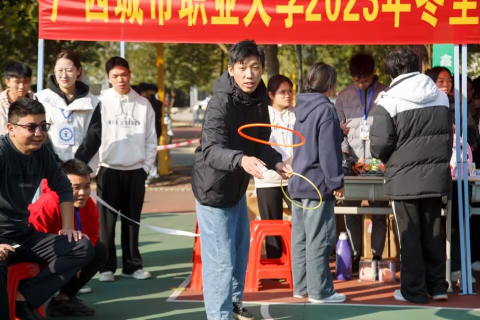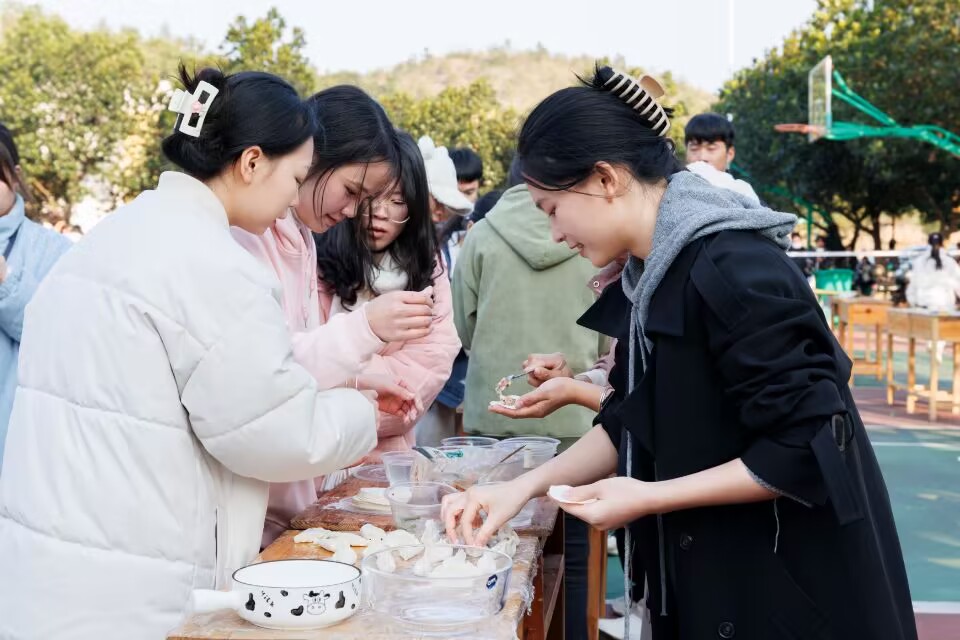在活动现场,还开展了有趣的游园活动。学生们可以通过“套圈”游戏赢得礼品。同时,还可以在活动现场免费品尝汤圆,让同学们也在冬日感受到家的温暖和甜蜜。