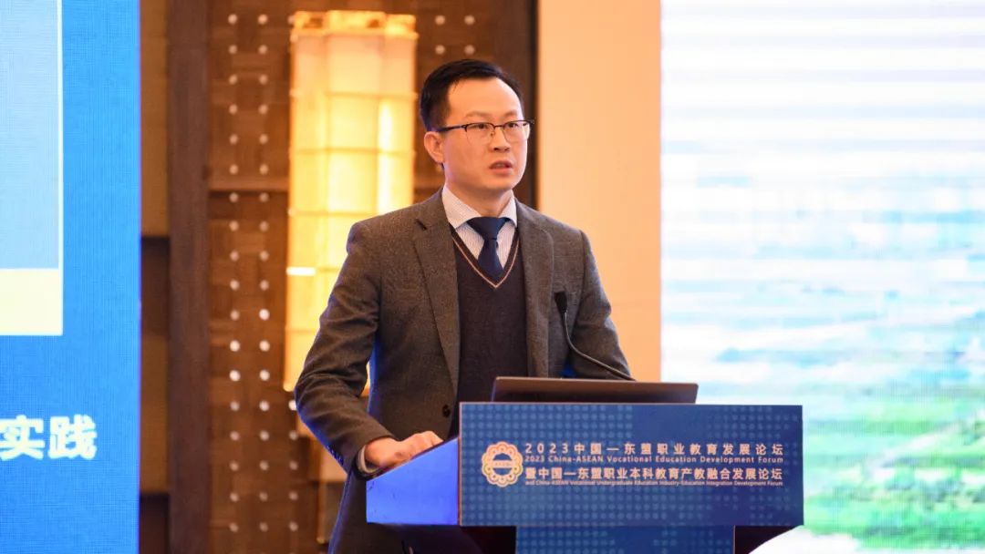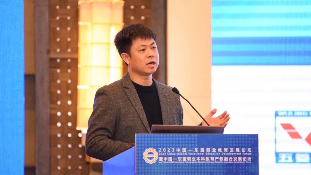 中国—东盟职业教育研究中心常务副主任兼秘书长王屹以《共建中国—东盟职业教育共同体,助力广西职教“出海”》为题作主旨演讲