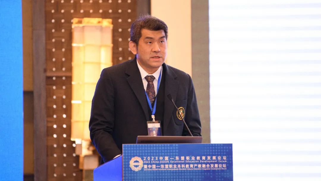 泰国易三仓大学亚洲创新学院院长谢宗顺以《东盟国家职业教育与职业幸福感发展趋势——以泰国为例》为题发表演讲