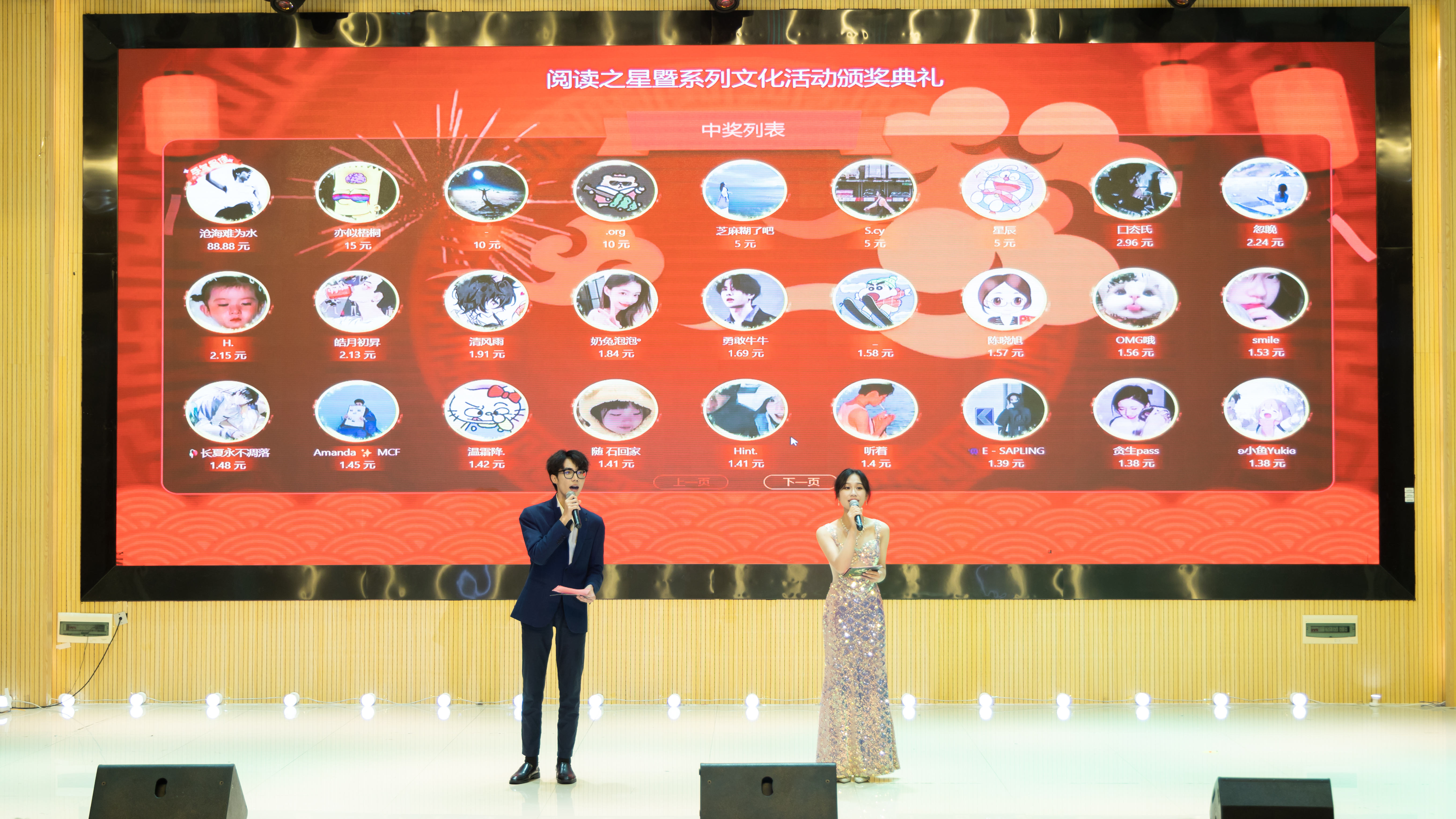除了精彩表演还有惊喜互动环节,在场观众扫描大屏幕二维码进入学校图书馆官方微信公众号平台发送关键词“颁奖典礼”即可参与摇红包活动,被抽到幸运号码的观众可获得大礼包一份。