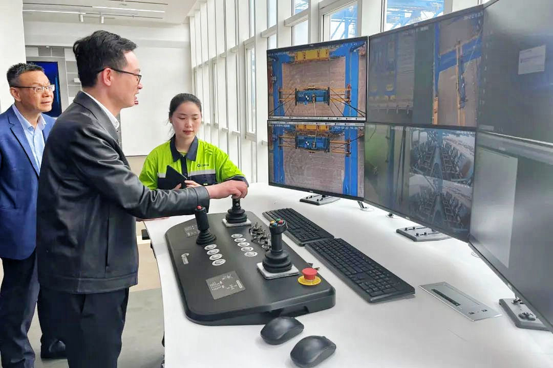 唐臣院长和学院教师在广西钦州保税港区盛港码头有限公司体验物流智能信息化管理操作