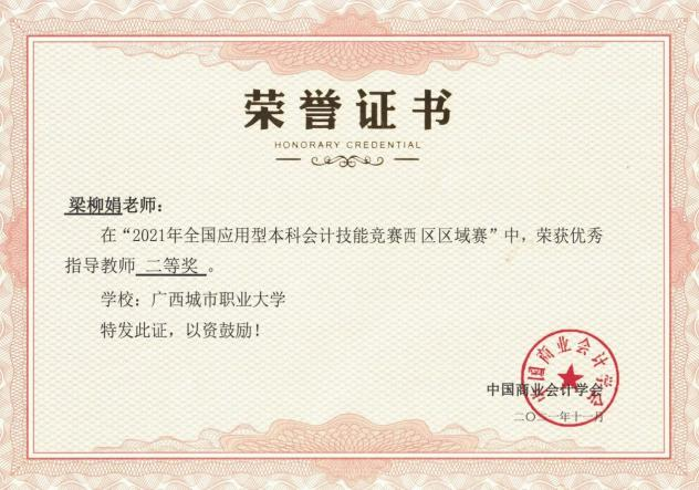 团队成员教师先后获得省部级教学成果二等奖奖1项,《人工智能在现代商贸人才培养中的应用研究与实践》;校级教学成果奖2项,《信息技术在职业本科院校会计专业课程教学中的应用研究与实践》获二等奖,《教育人工智能视角下国际商贸人才培养模式创行的研究与实践》获一等奖;团队边海洋老师获校级教师技能比赛二等奖;团队边海洋、梁柳娟老师在首届“网中网”杯课程思政教学设计大赛获优秀奖等。学生参加全国“衡信杯”税务技能大赛、全国财经大数据处理综合技能大赛、“网中网杯”财税共享服务、一带一路暨金砖国家技能发展与技术创新大赛之数智财经赛项等各类学科竞赛获个人奖逾500人次,集体获奖逾20次。