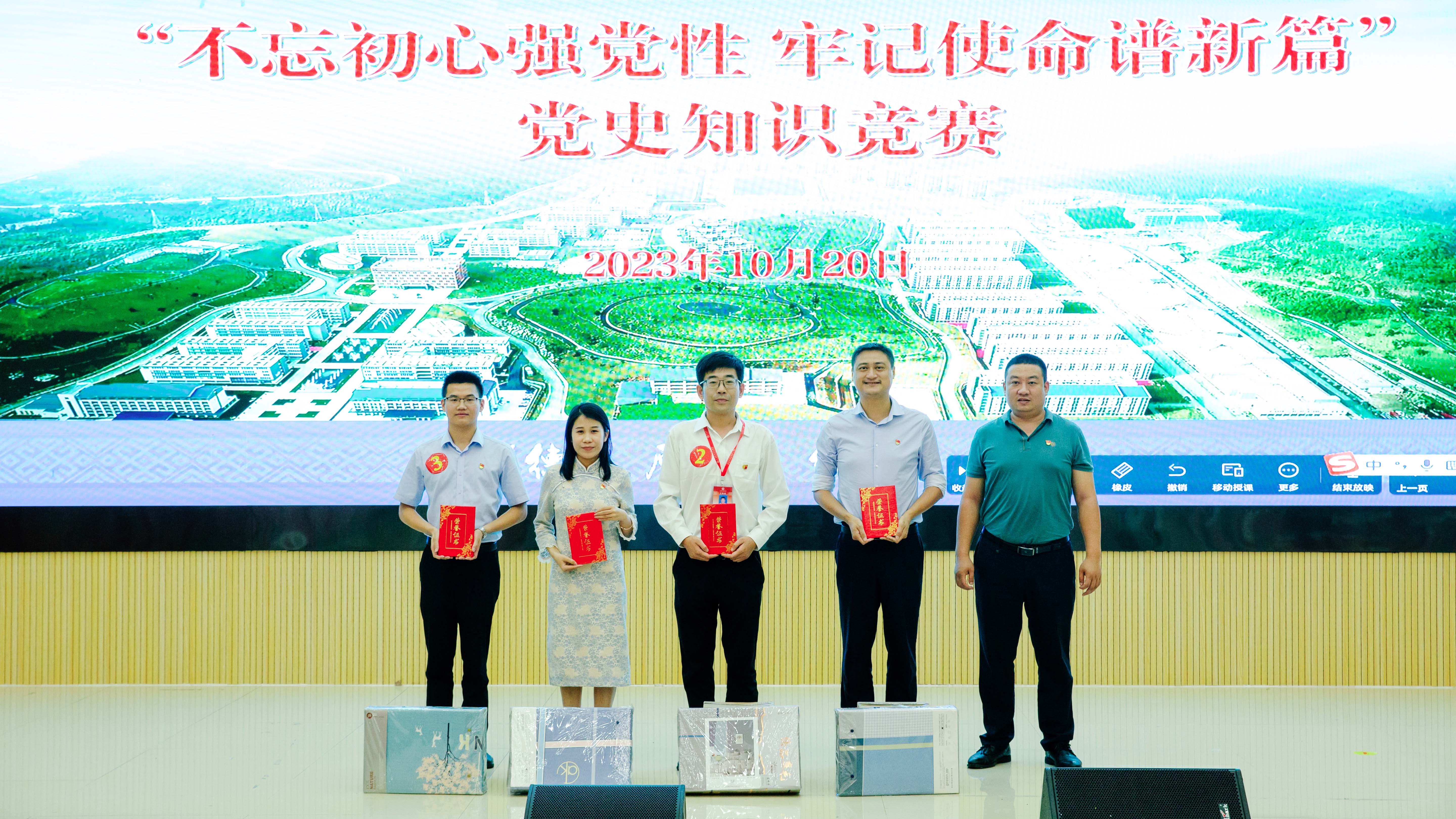 最后,主持人宣布此次竞赛的获奖名单及党史知识笔试获奖名单,领导老师为获奖代表队颁奖。