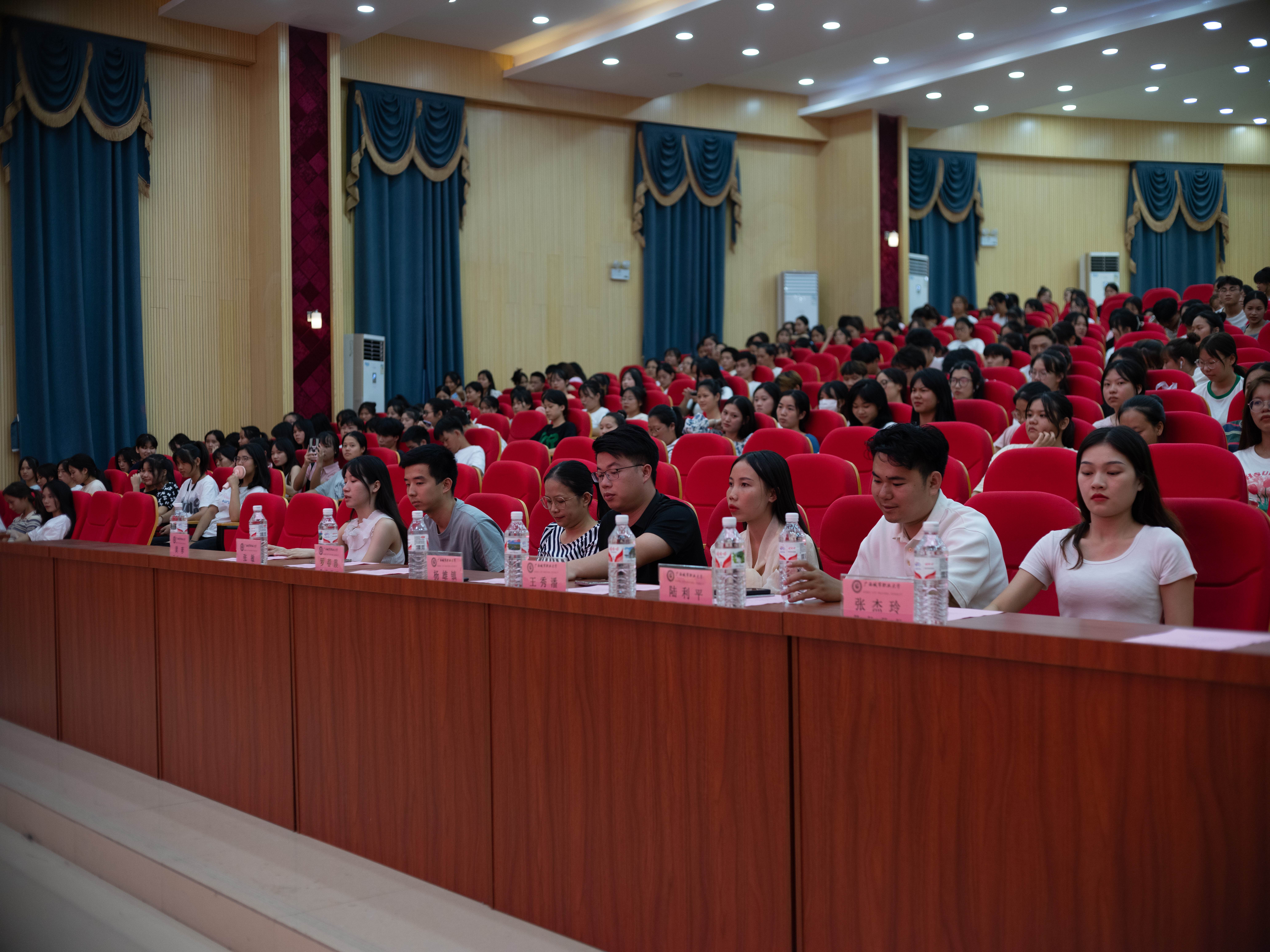 为迎接党的二十大的召开,表彰先进的班级职业团队,增强班干团队凝聚力和集体荣誉感,营造教育学院内部团结、和谐、友爱良好的工作和学习氛围,我校教育学院于7月26日至29日晚分别在崇左校区15区报告厅和演奏大厅举行“喜迎二十大•共赴新征程”班级职业团队聘书授予仪式暨表彰大会。教育学院党总支副书记杨成旺,副院长陈鹏光、罗春霞,学工办副主任王秀潘、杨雄镇等领导老师及教育学院全体同学参加大会,共有赵艺膛、莫广圣等1215位同学得到表彰。