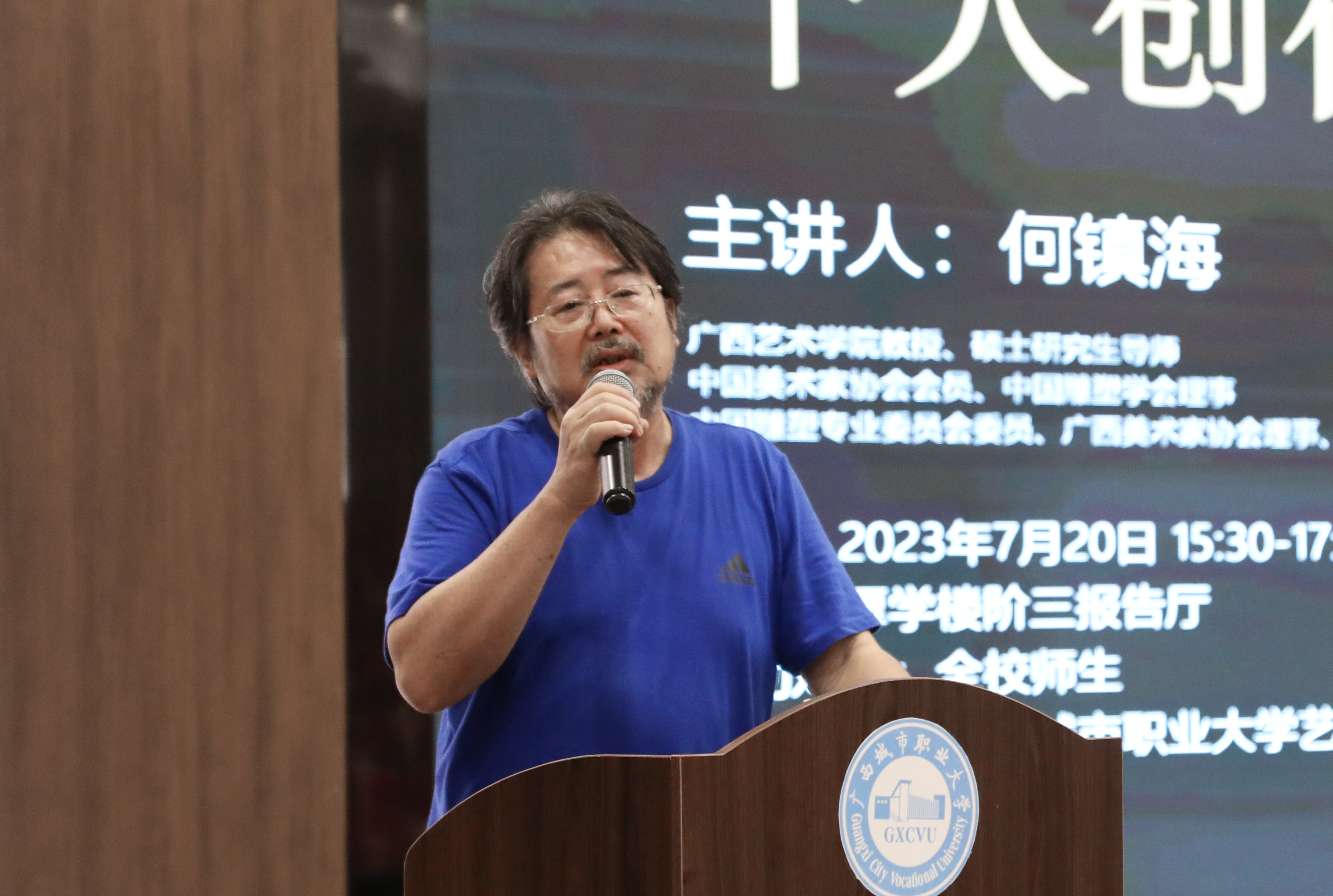 7月20日下午,艺术设计与文化传媒学院在阶梯三报告厅邀请了广西艺术学院何镇海教授为学院师生开展“艺术启蒙到艺术创作———个人创作历程”的讲座,师生共同探讨艺术创作、文化传承等相关话题。