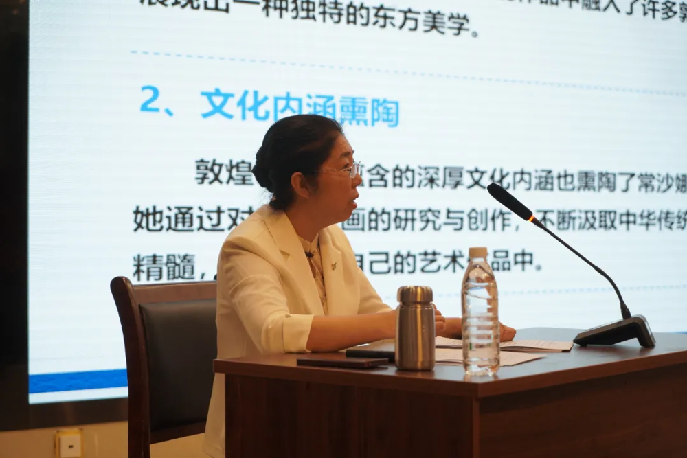 刘彦红副研究员在回顾常沙娜对国内外文化交流活动中,提到常沙娜曾多次携敦煌艺术作品参与国际展览,她积极参与国际学术研讨会,与海外学者进行深入的敦煌文化研讨,常沙娜在国内外多次举办敦煌文化讲座和工作坊,向公众普及敦煌艺术的魅力,提升了大众对敦煌文化的认知和兴趣,为传播敦煌文化作出了重要贡献。